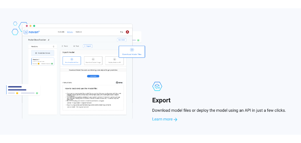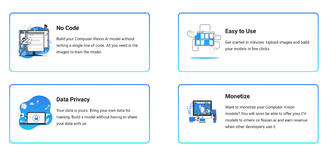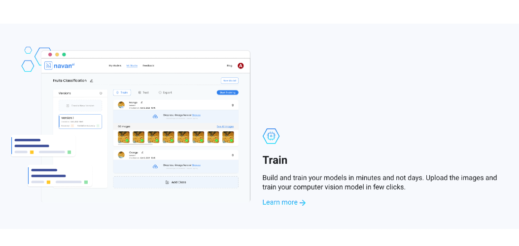 navan.ai is a platform enabling developers and businesses to build and deploy AI models without writing a single line of code, in minutes instead of days or weeks. Businesses can save up to 85% of their time and cost of development of AI models with navan.ai Developers can eliminate errors and build AI models in just a few clicks without having to worry about the code. Deployment with navan.ai is extremely easy and the developer only needs to upload the AI model to deploy it on cloud and get the API. No coding involved at all. Businesses and developers get to pay according to the usage and save hundreds of $ of cost incurred on infrastructure.