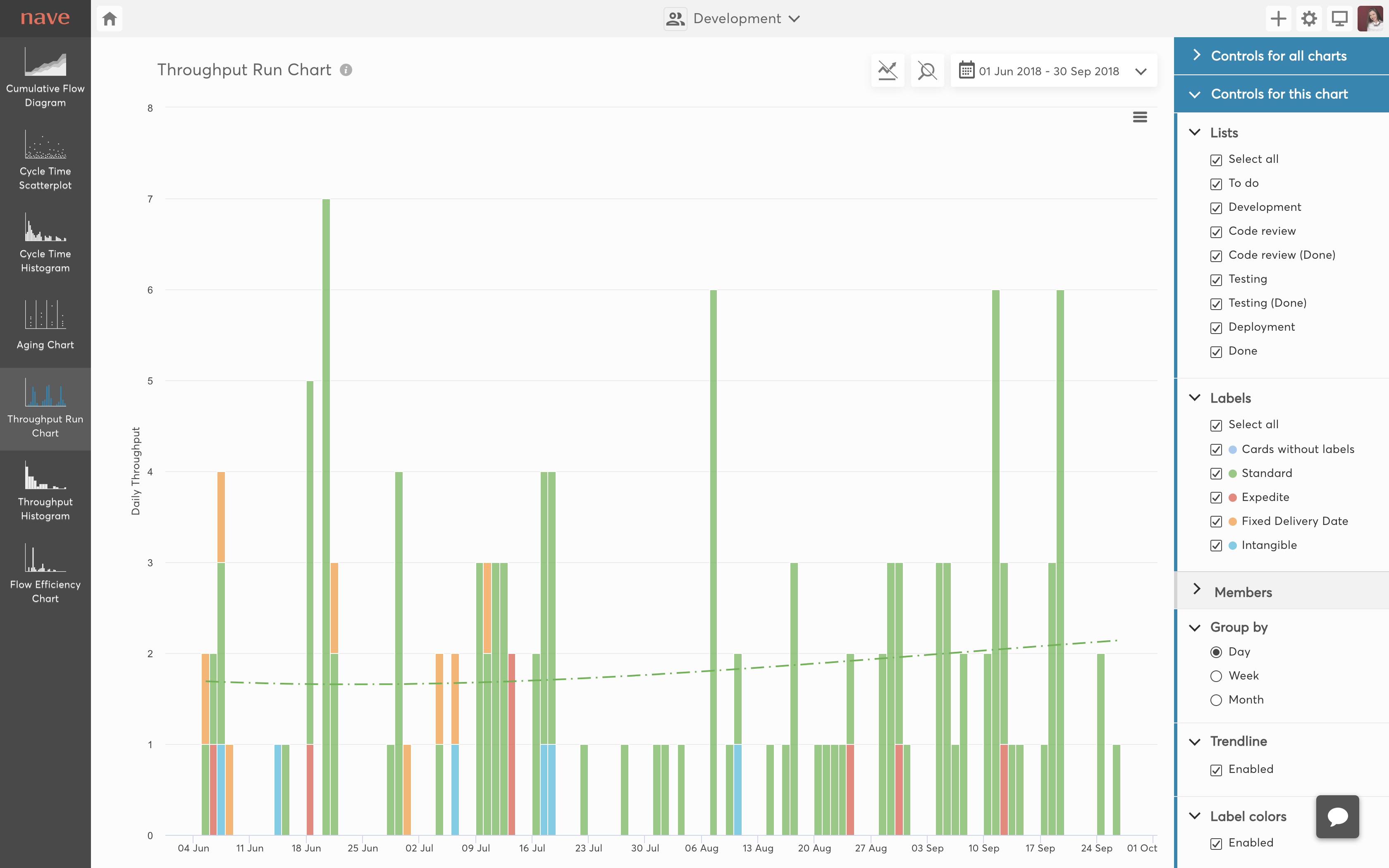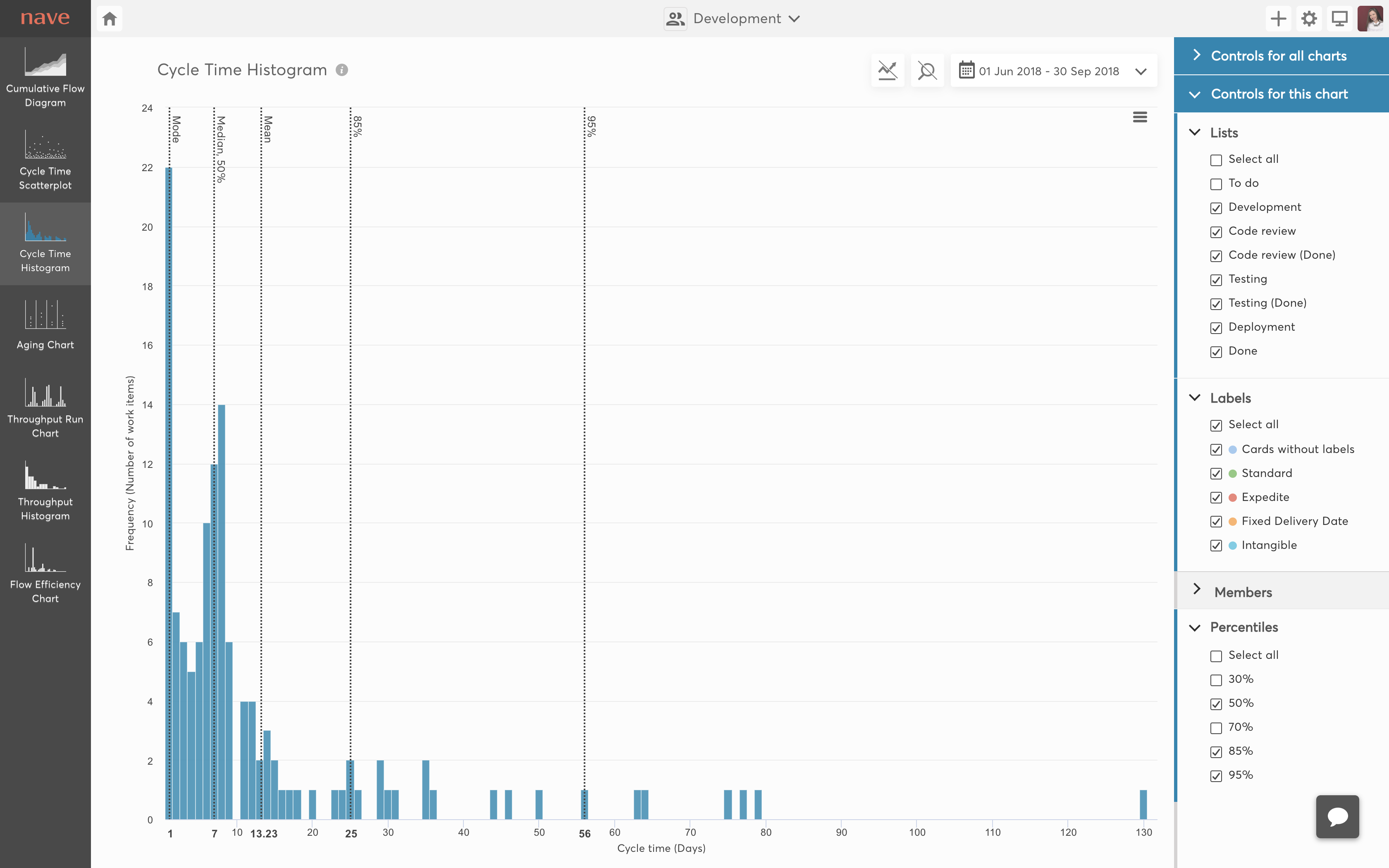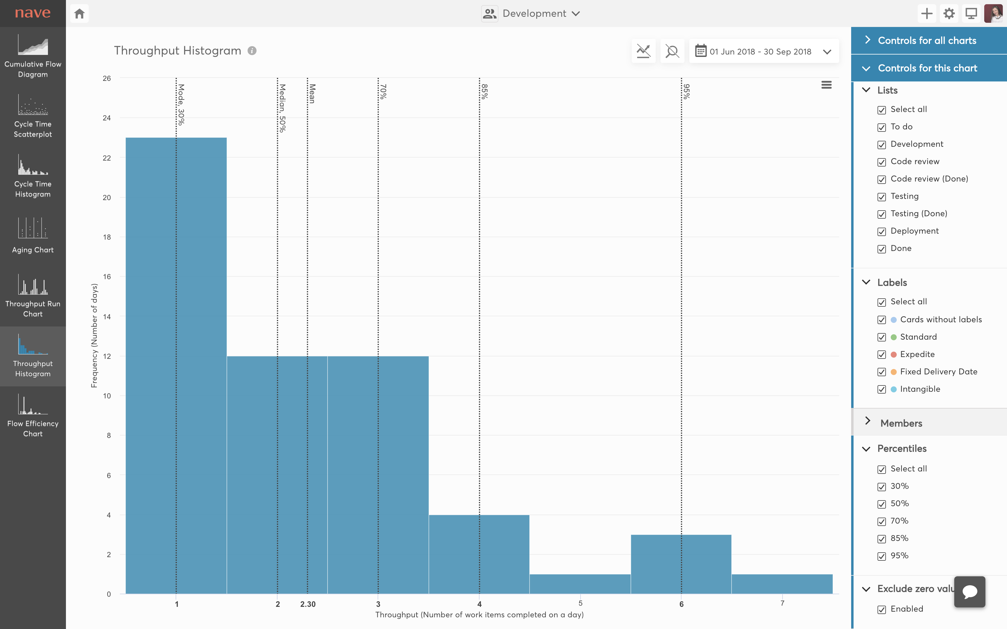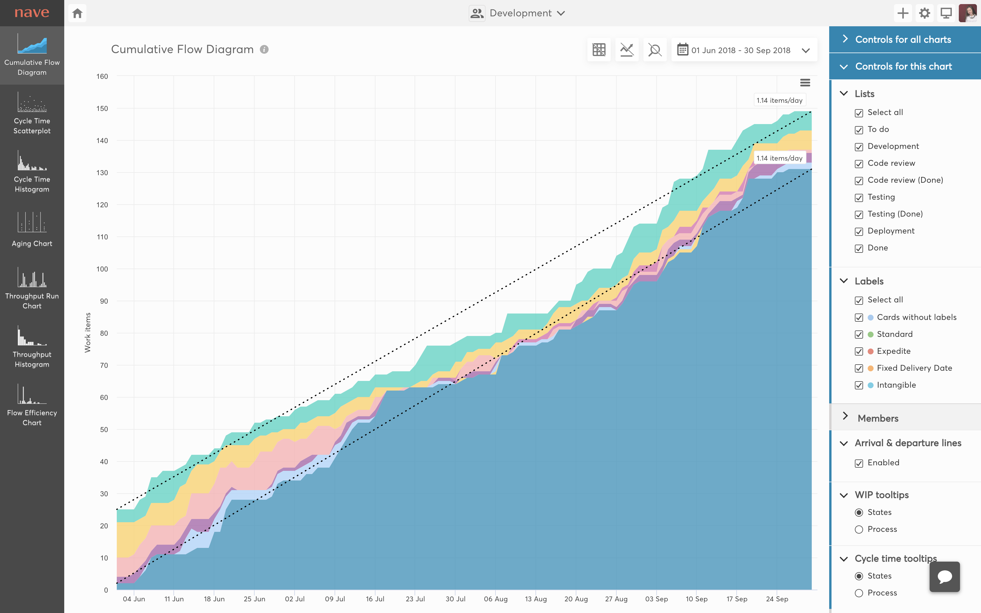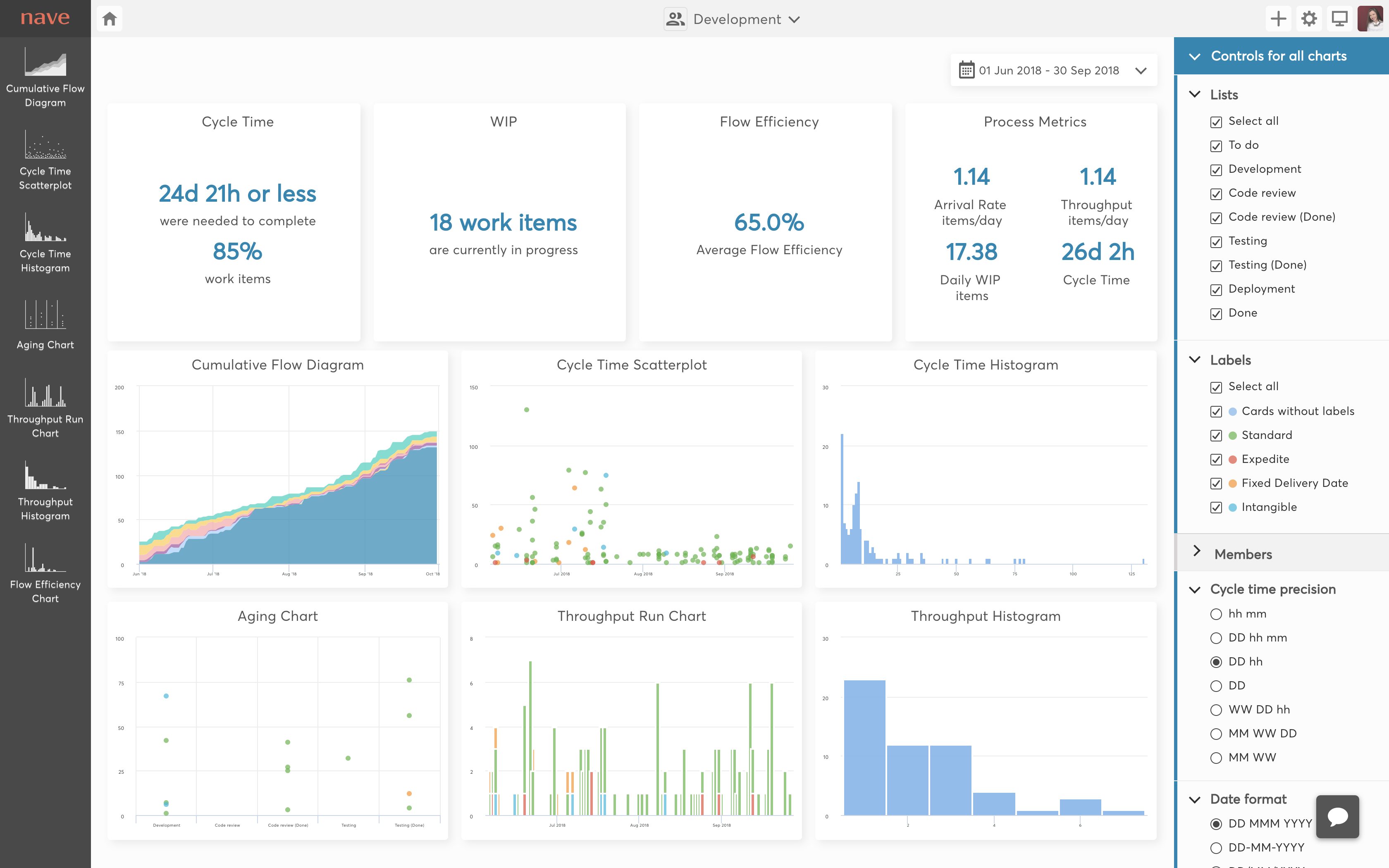 Nave helps you increase your performance, identify problems with ease and focus on improving workflow efficiency. Our dashboards reveal the fundamental characteristics of your Kanban process. We have enhanced the industry standard analytical charts for Kanban to help you reach your full potential! We integrate with some of the most popular platforms like Jira, Trello, Asana and others. With Kanban Analytics, you can: * Evaluate your workflow performance * Analyse lead times and cycle times * Identify bottlenecks as they occur * Make probability based, data-driven estimates * Trace productivity patterns * Calculate your work delivery rate * Measure your team's productivity * Monitor the time work spends in progress * Assess the efficiency of your workflow Our (current) data visualisation tools: * Cumulative Flow Diagram * Cycle Time Scatterplot * Cycle Time Histogram * Aging Chart * Throughput Run Chart * Throughput Histogram * Flow Efficiency Chart