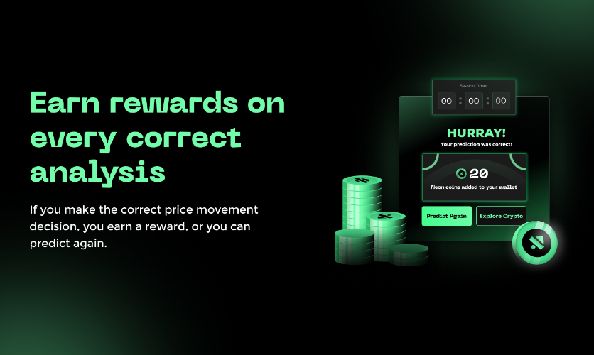 Neon enables users to test their investment skills in crypto and make informed cryptocurrency investment decisions. Investors can learn from the latest crypto trends, analyse price movements and earn rewards for their correct predictions.