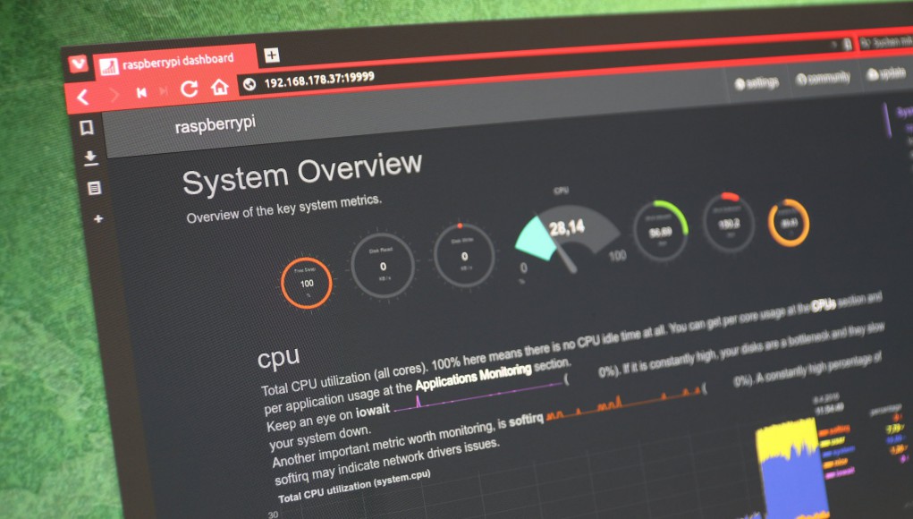 Unparalleled insights, in real-time, of everything happening on your systems and applications, with stunning, interactive web dashboards and powerful performance and health alarms. Analyse thousands of metrics per server. Everything about the system (CPU, RAM, disks, network, firewall, QoS, NFS, etc) and detailed performance metrics for dozens of Linux applications (such as web servers, databases servers, email servers, DNS servers, etc) and SNMP devices. Alarms can be set on any metric monitored by netdata. Alarm notifications are role-based and support dynamic thresholds, hysteresis and can be dispatched via multiple methods (such as email, slack.com, pushover.net, pushbullet.com telegram.org, twilio.com). netdata collects thousands of metrics per server per second, with just 1% CPU utilization of a single core, a few MB of RAM and no disk I/O at all.