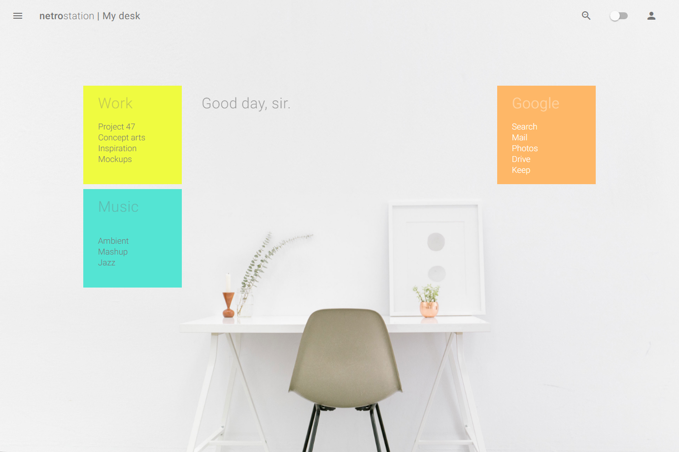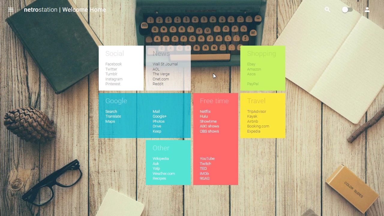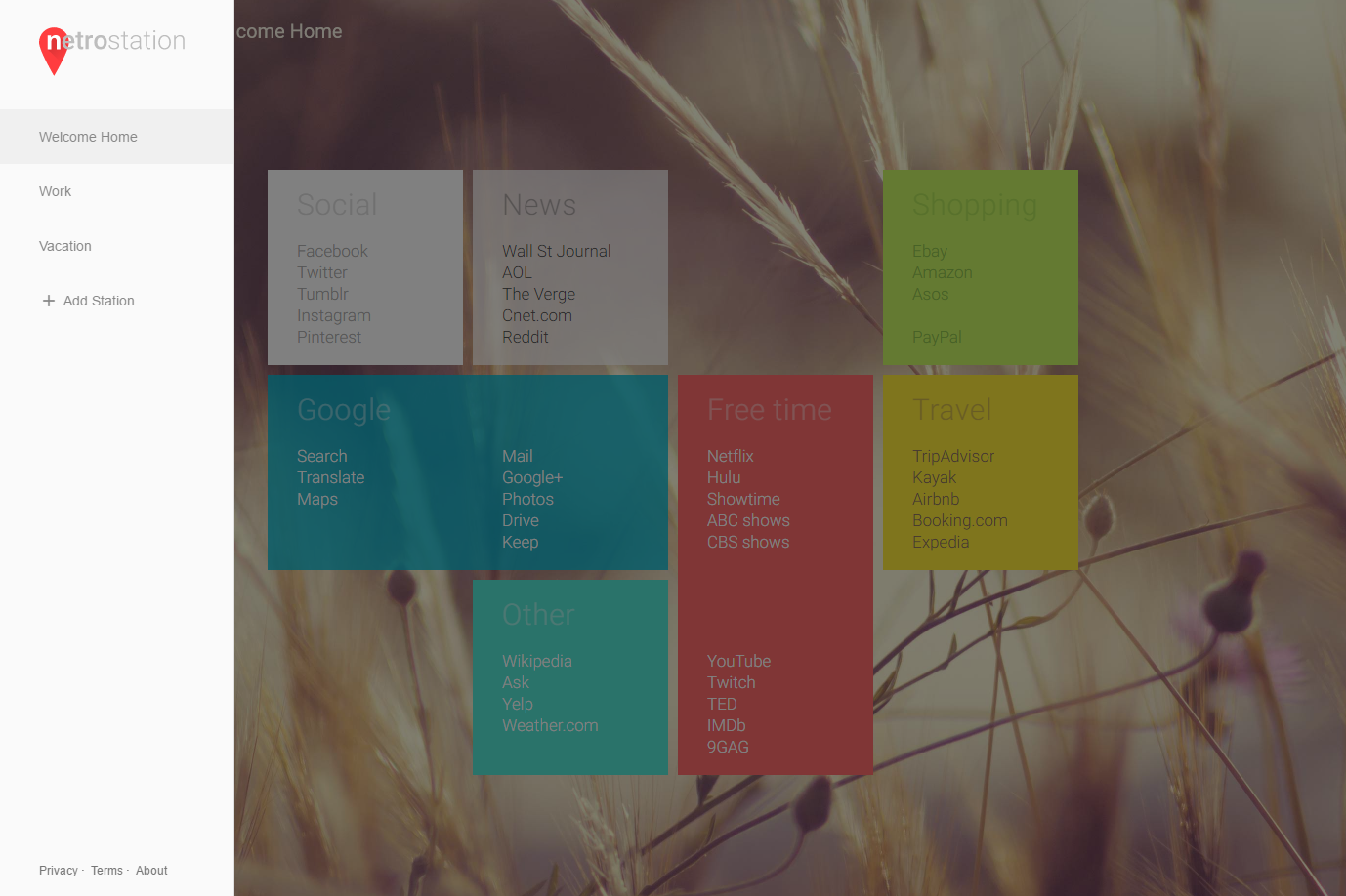 netroStation makes browsing the Internet easier and more comfortable. All your favorite links are visually organized and available on your browser's homepage. It can help you be more productive at work, improve your browsing experience at home, and help you, your parents, or kids to be just a click away from websites you most often visit. Try live demo now https://www.netrostation.com/#/public/Welcome%20Home and create your free account. Stay in touch: https://www.facebook.com/netroStation https://www.youtube.com/channel/UCnU_A8gsbxXRQVG0MaoSfew