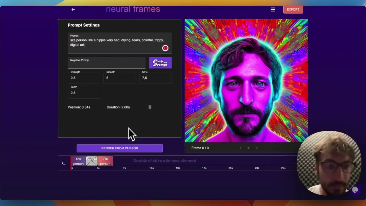 neural frames allows to generate awesome animations from not more than text inputs. Its refined video editor offers complete control over the outputs while being easy to use. Use cases range from music videos over digital art to advertising. It can also be used nicely as a Spotify canvas maker. Among its main features are: - 🌌 Choose between five different AI models - 🌇 Refine an AI model to animate any object/person you want (start with yourself!) - 🎥 Full control over the generation process - 🏎️ Ultra high-speed video generation - we have the BEST AI hardware - 🧠 An AI-powered prompt-helper - 🖼️ 1080p video quality
