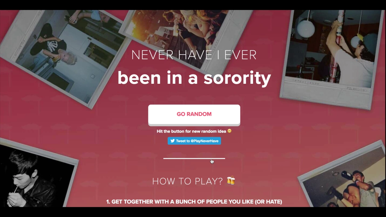 Never Have I Ever is an entertaining game to get to know friends, colleagues and strangers. Be aware this game is dangerous, has been destroyed many friendships ???? and relationships ???? before. Web: http://neverhaveiever.xyz Chatbot version is also available NOW through Messenger: https://m.me/playneverhave