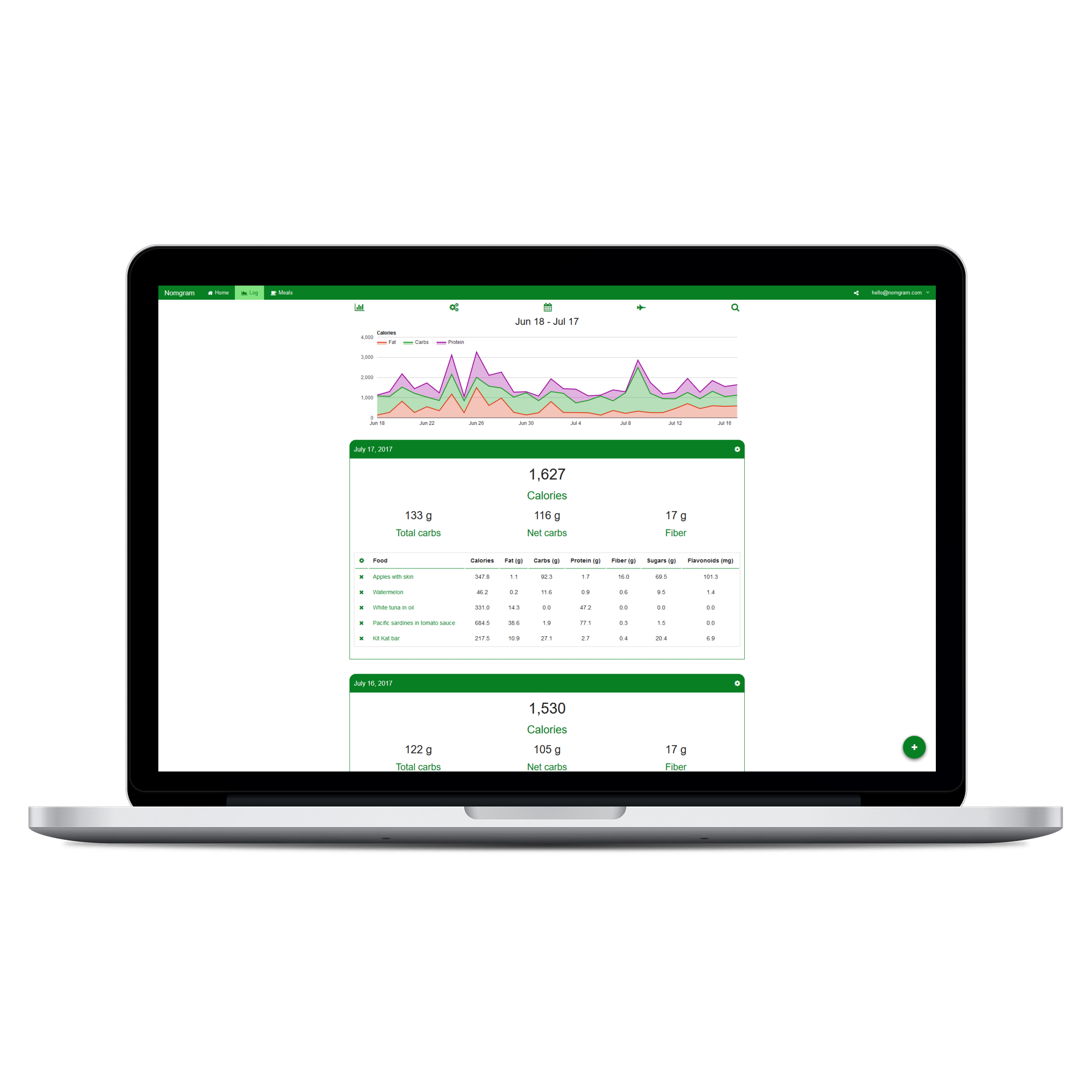 Read Logos and Nutrition Labels Add food to your log in less than 60 seconds: take a photo of the logo and the label, click save. Secure We use HTTPS with 128-bit AES encryption to keep your data secure Photo Food Search Search the USDA food database using state-of-the-art image recognition technology. No Ads We're not trying to sell you anything other than a delightful meal tracking experience. Multiple Device Support Add food on your phone throughout the day, dig into the details when you're at work or home.