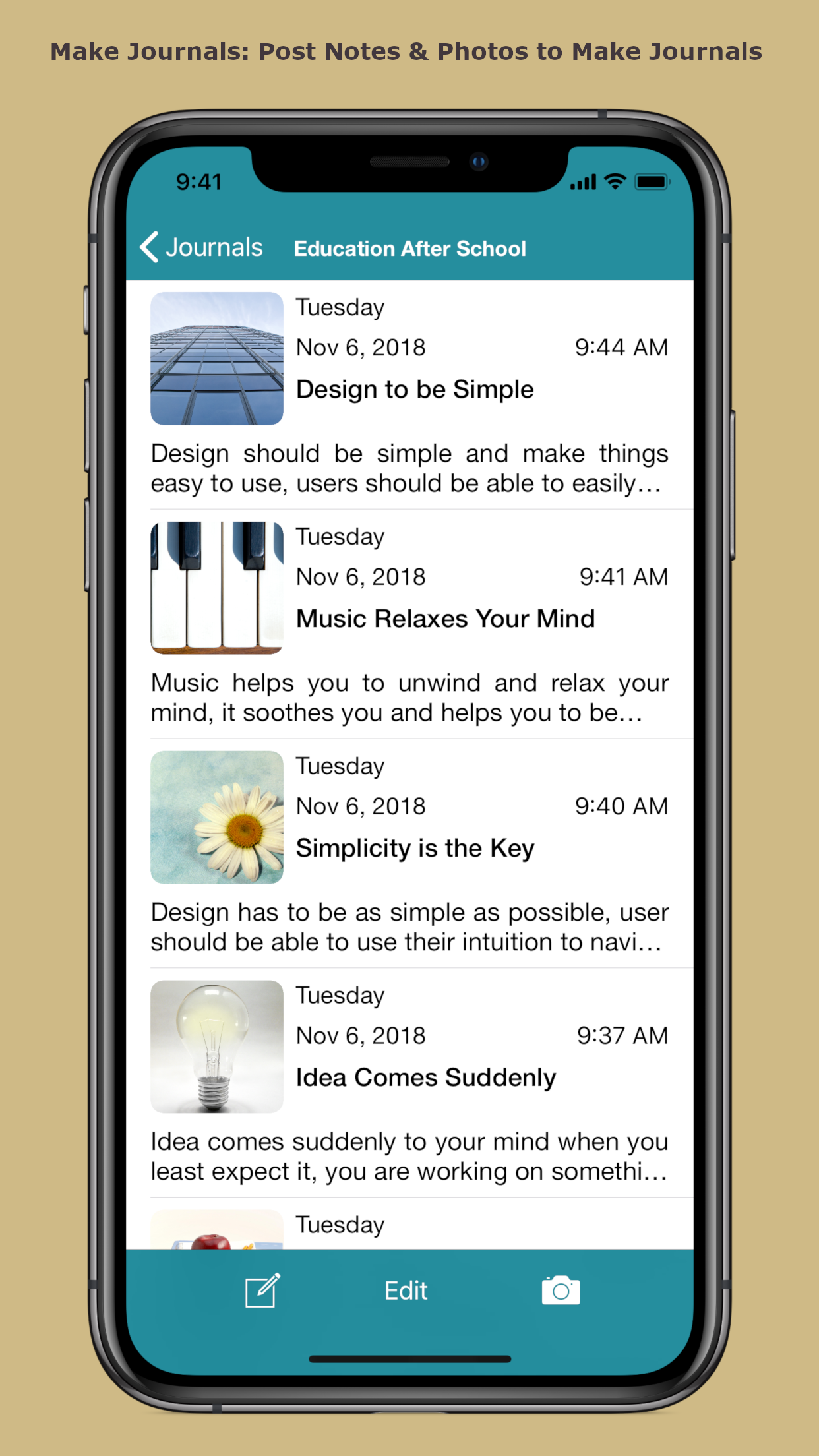 With notes app you take photos and compose notes daily, these notes are all over the place and keeps on accumulating day by day, it's not easy to find notes that deal with a particular subject, with Noomph you take photos & compose notes first, later you can post your notes & photos to journals. Noomph is a diary & journaling app that provides. - A simple interface to take photos and writes notes daily - A powerful organiser that allows you to post your notes and photos that deal with a particular subject to a journal of your choice and make different types of journals, you can also move your notes & photos from one journal to another.