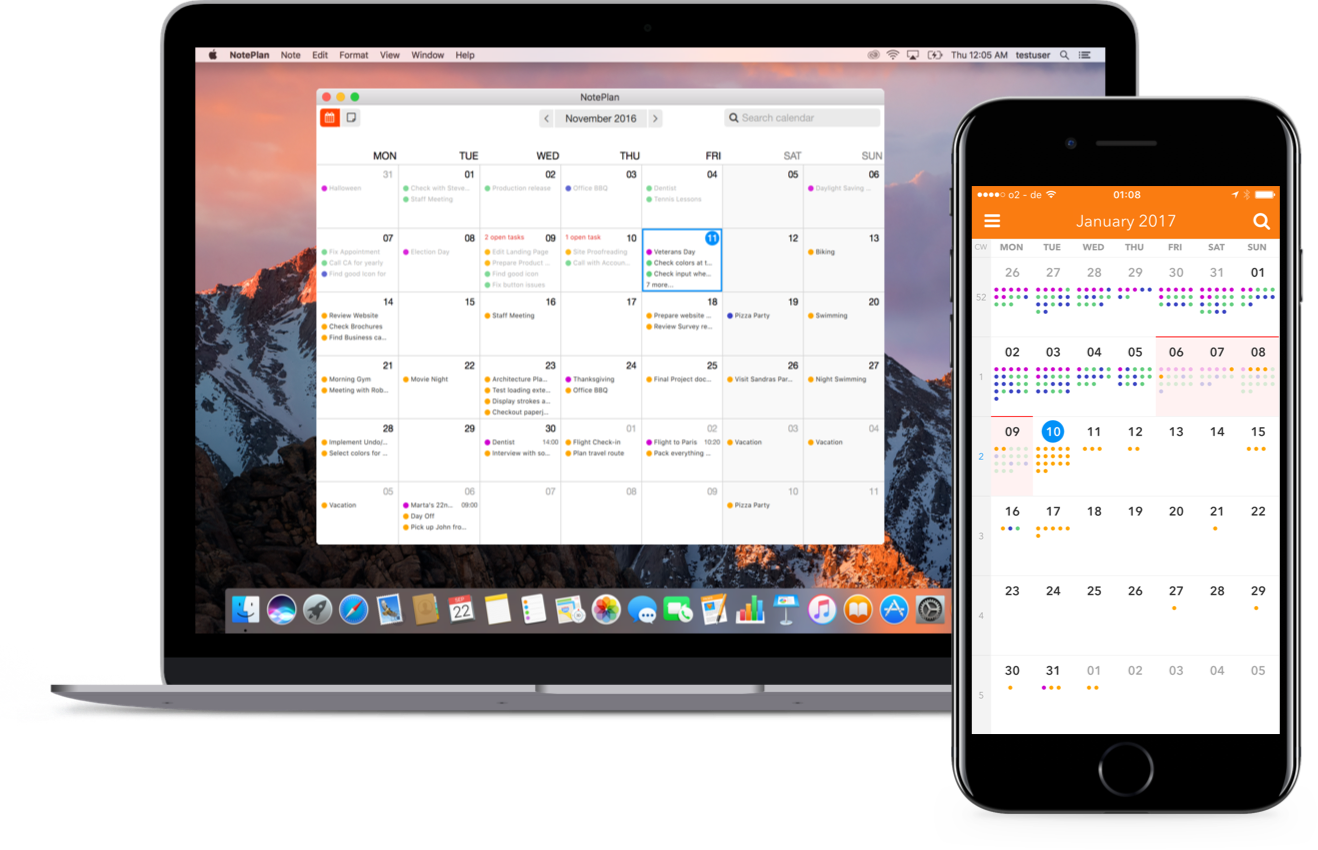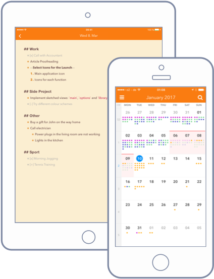 Daily Planning app for iPhone and iPad. Visit http://noteplan.co and join the beta now! Simplistic and text-based app for managing daily tasks using Todos, Notes and a Calendar. - A calendar gives you a bird’s eye view of your tasks - Mark your todos as done, scheduled or cancelled - A new, fresh note to plan for every day - Use Markdown with custom flavor for productivity - iCloud Drive Synchronization between your iDevices - General notes for projects and lists outside the calendar - Schedule todos to different dates across your calendar - Simplistic and text-based - no magic! - Pulls events automatically from your iCalendar
