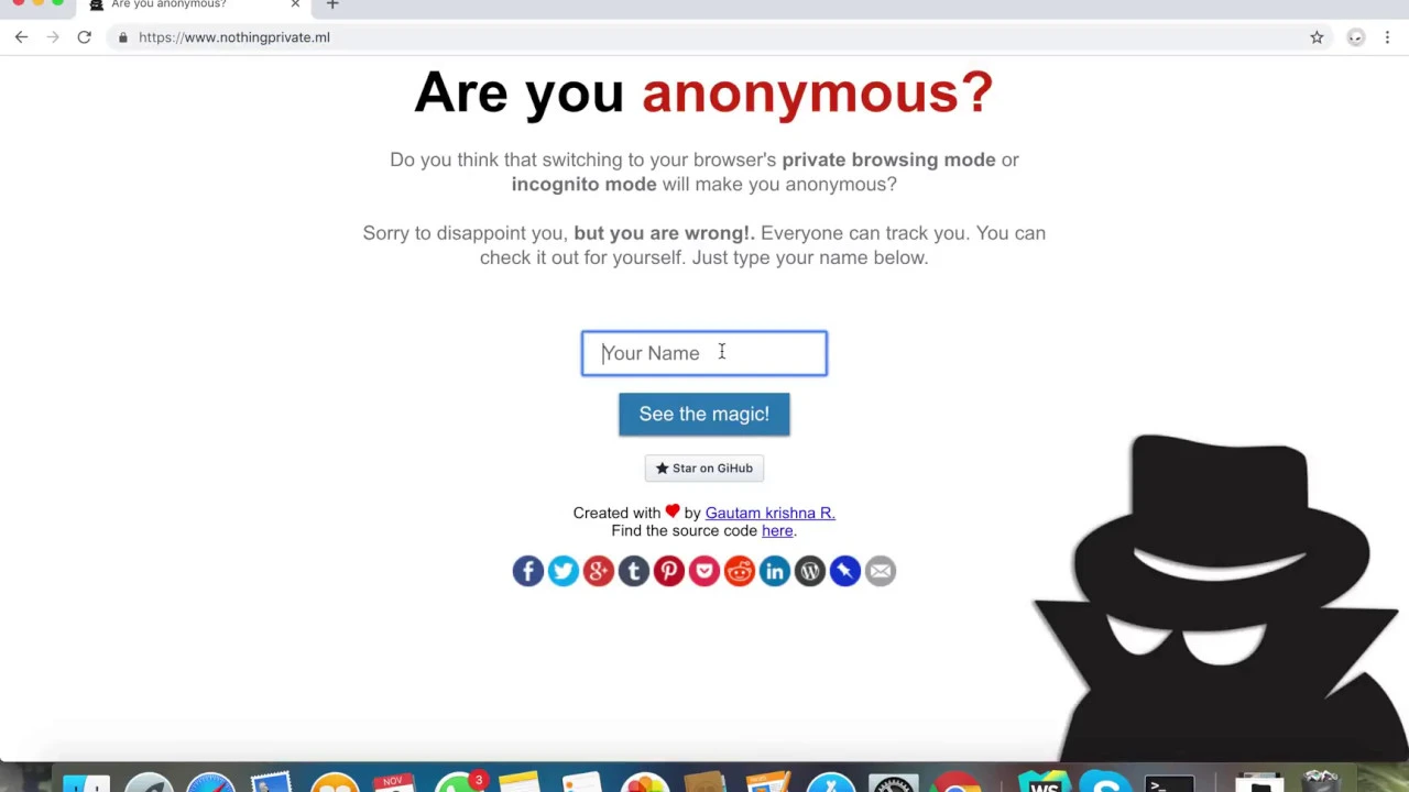 This project is a proof of concept that any website can identify and track you, even if you are using private browsing or incognito mode in your web browser. Many people think that they can hide their identity if they are using private browsing or incognito mode. This project will prove that they are wrong. More Info: https://github.com/gautamkrishnar/nothing-private