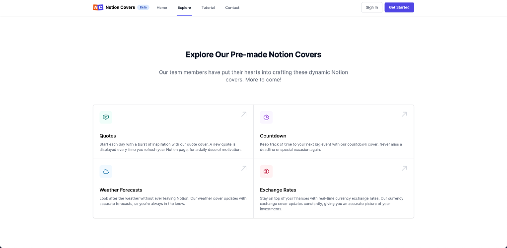 Notion Covers is a handy tool that allows you to design personalized cover images for your Notion pages. The covers are dynamic, which means that the content displayed changes every time you refresh the page. You can choose from a variety of options to create your own covers, including random quotes, countdowns, weather forecasts, and more.