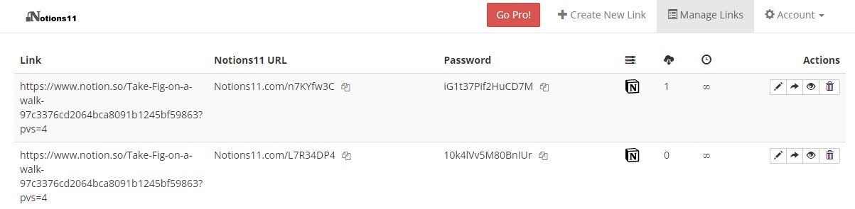Sometimes you need a little bit more security on your Notion links. Supercharge your Notion with Notions11! With Notions11 you can easily add a password to your Notion links. This service is free and does not require an account. But there is more! You can also create expiring links, receive access notifications and analytics on where and how often your links were opened.