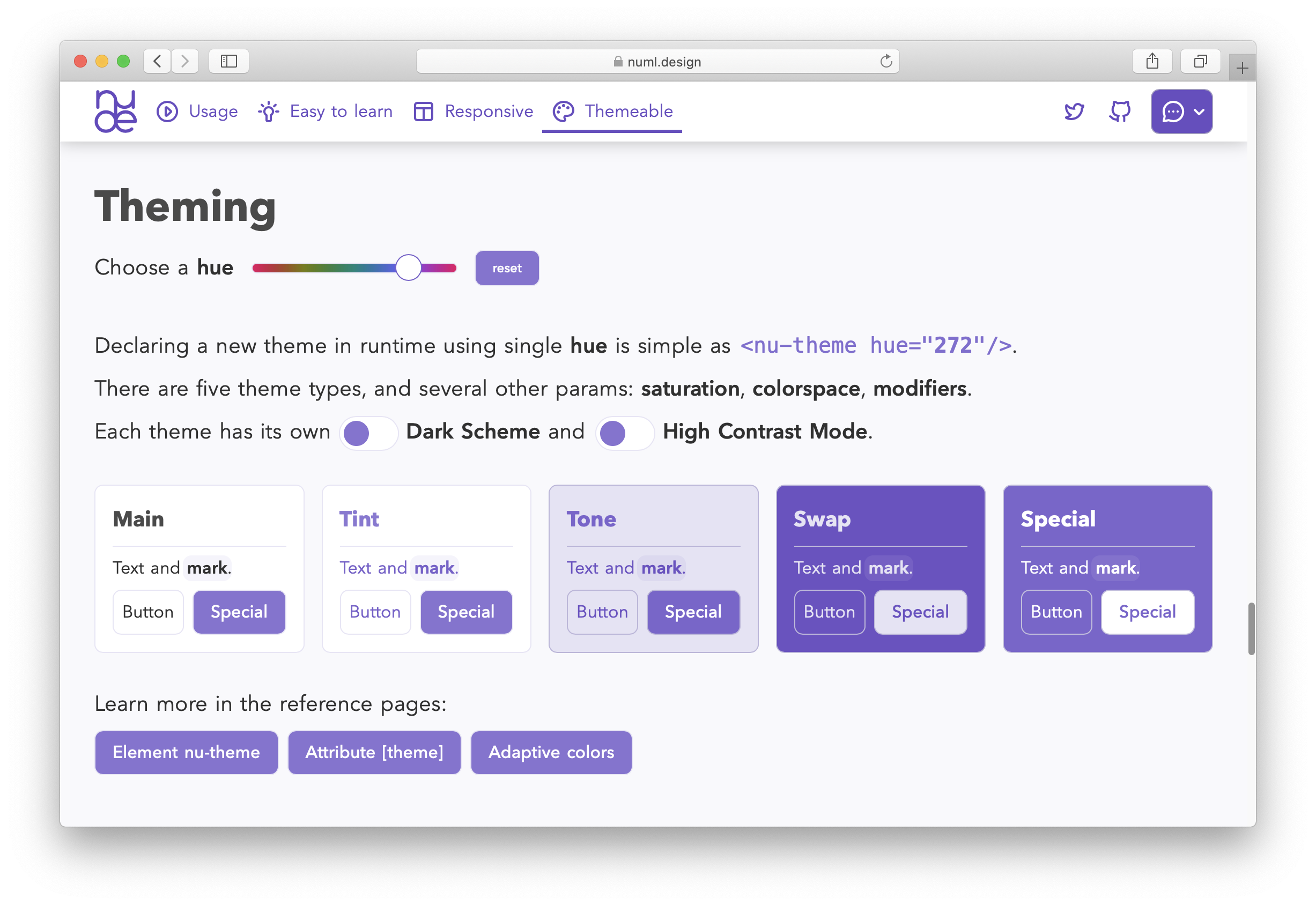 Numl is an HTML-based language and design system that lets you create responsive and accessible high-quality web interfaces with any look. It allows you to create components and layouts you need by composing base elements and gives you a handy color management system with automatic Dark and Contrast modes. Numl is based on Custom Elements and runtime CSS generation. It has an API to create your own elements, style attributes, and behaviors. The build step is not required, just add a script tag to your HTML file and you are ready to go!
