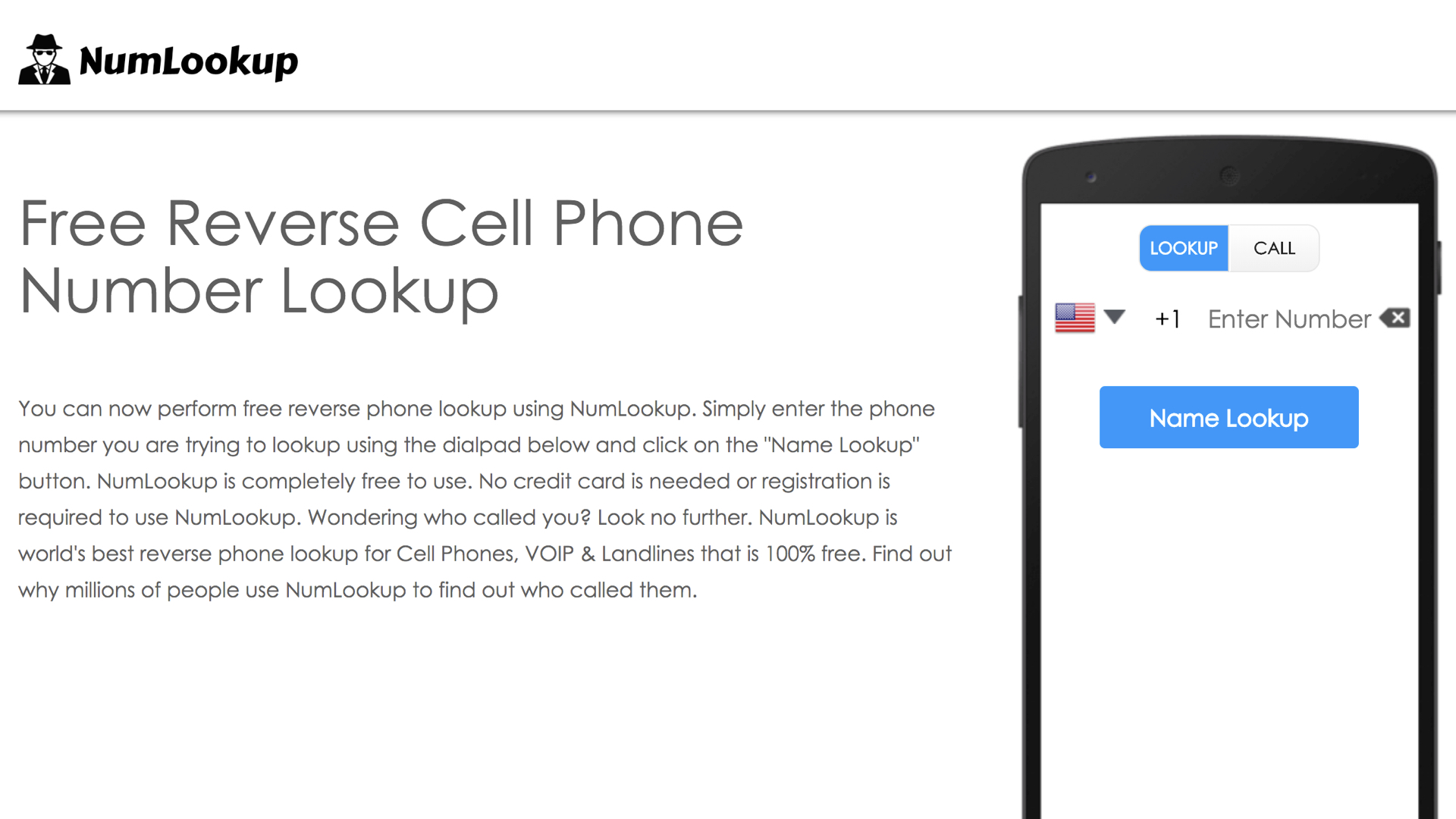 NumLookup can help you perform a reverse phone number search and lookup a phone number to identify the owner. You can quickly answer questions like: “Who called me?”, ?“Is this a cell phone number?”?, “Whose phone number is this?”. No registration or sign up is needed to use NumLookup. It is an entirely hassle-free reverse phone lookup tool - enter phone number and get owner's full name.