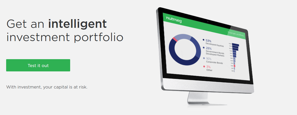 No nonsense investing - the best elements of a high-end investing service, strip out the complexity and cost, and provide it to you online. How it works? Set your goals and risk level Set personal goals and choose how much risk you want to take. Get an intelligent portfolio Nutmeg's investment experts will build and manage a portfolio for you. Watch your wealth grow Relax and enjoy your life while Nutmeg manages your portfolio.