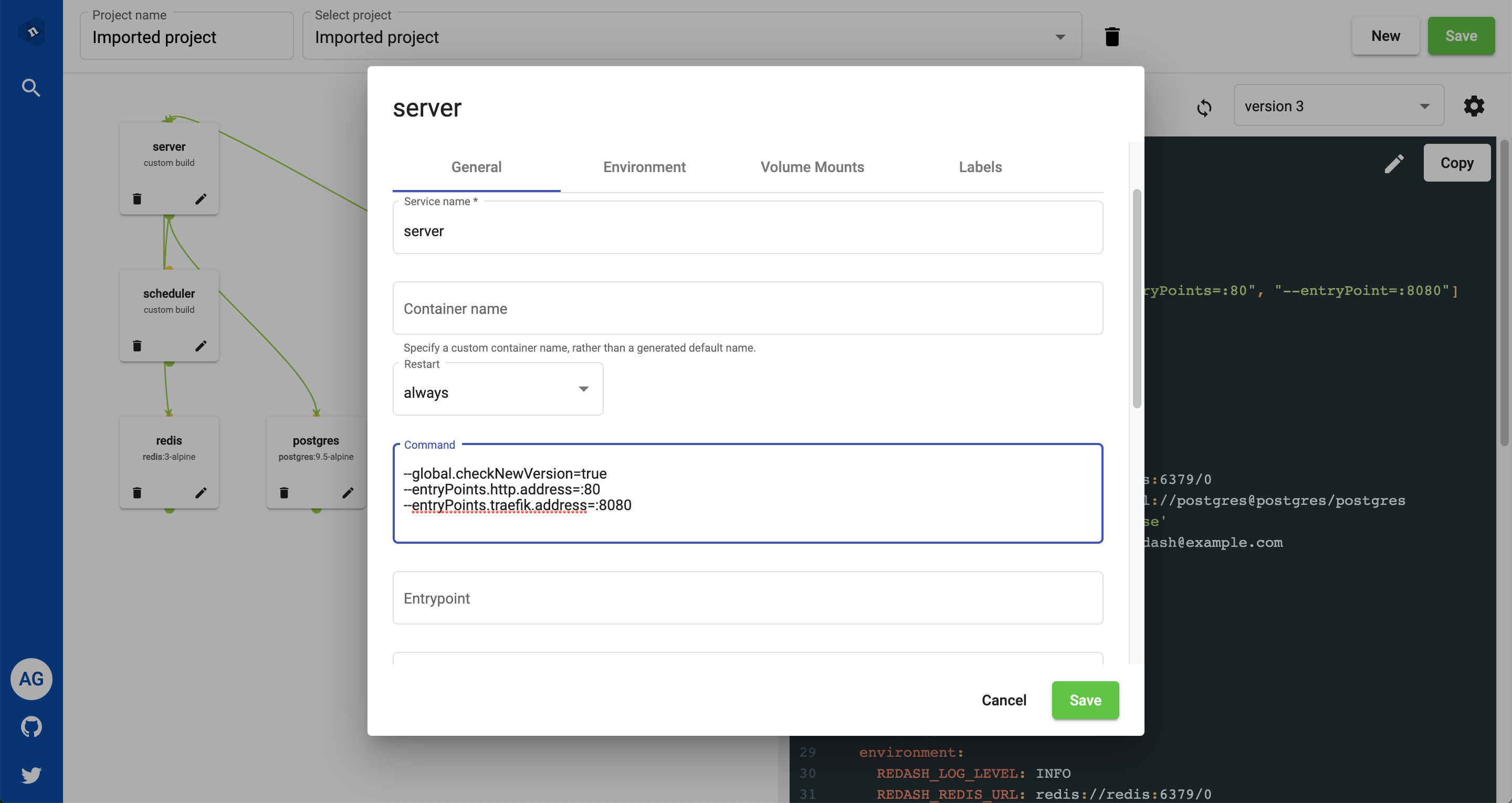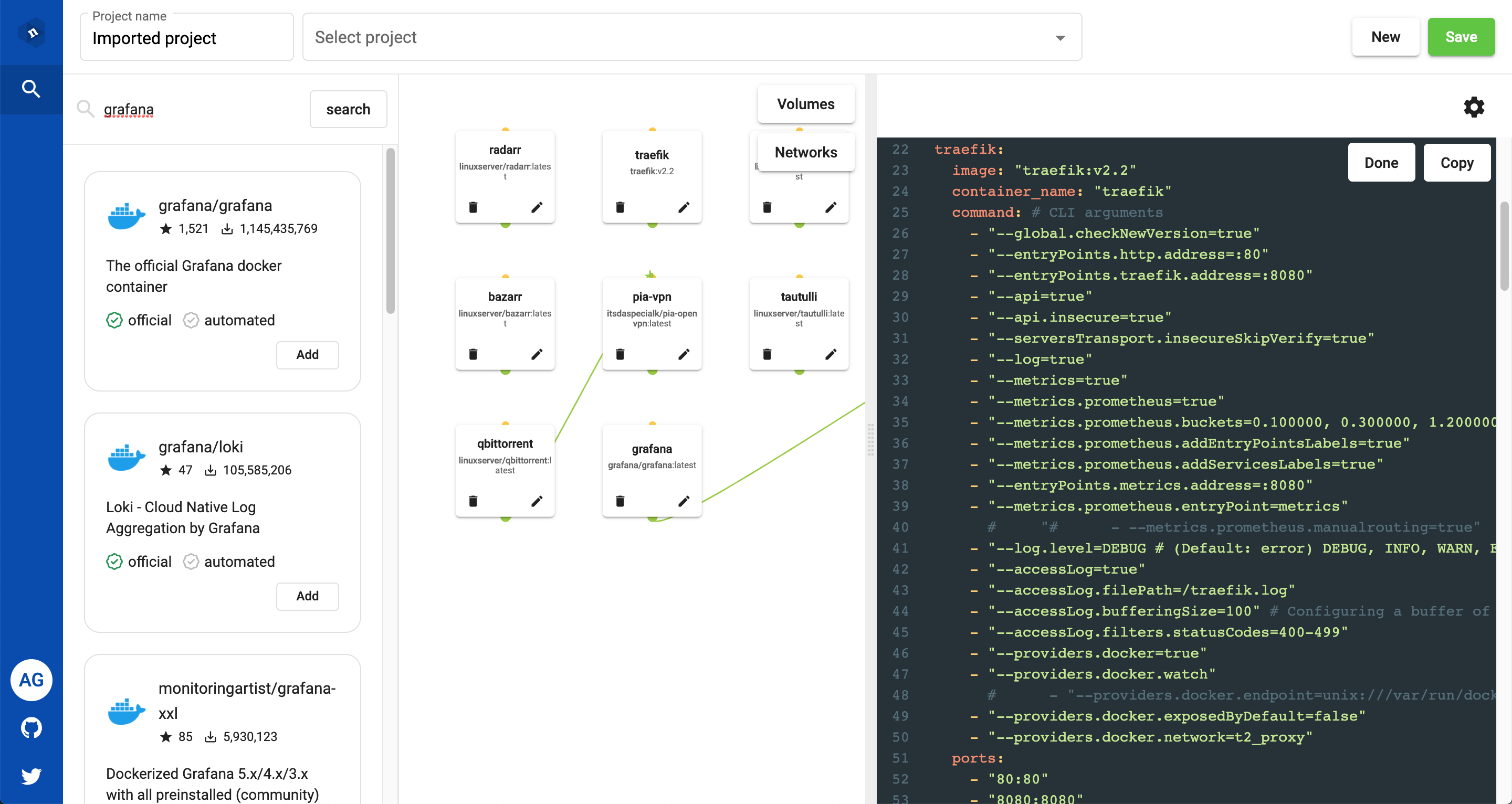 Nuxx lets users visually define the application stack and export docker-compose.yml code (kubernetes coming soon). Users can also import existing yaml code, or load pre-existing recipes to get started quickly. Free to use. Features being released soon. - Import/export Kubernetes configs. - Connect private servers to run deployments directly from the tool. - Use shared servers for even quicker deployments for testing/development purposes. - Swarm mode.