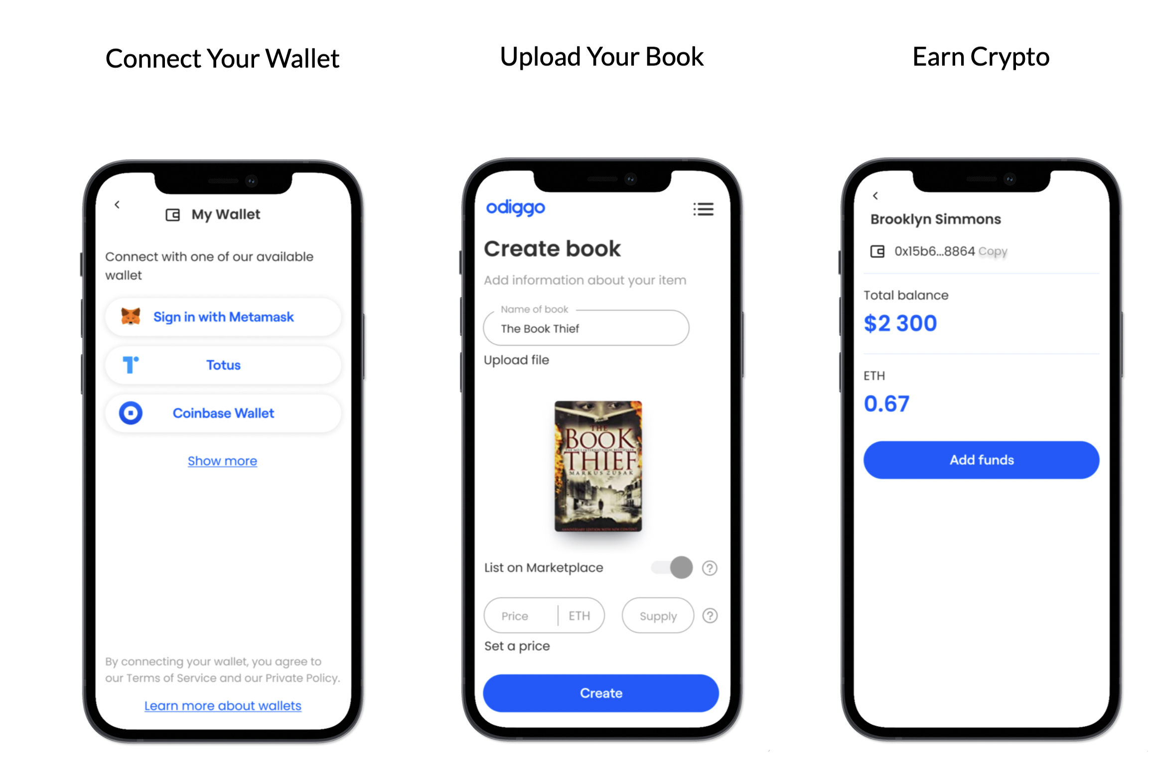 Odiggo.xyz is an NFT-marketplace for books, built to empower writers and simplify publishing for authors using blockchain and web3 technologies, as for readers, they can collect limited edition NFT-books that is autographed by their favorite authors/writers, along side joining a community of people sharing similar values while creating meaningful connections with their favorite authors.