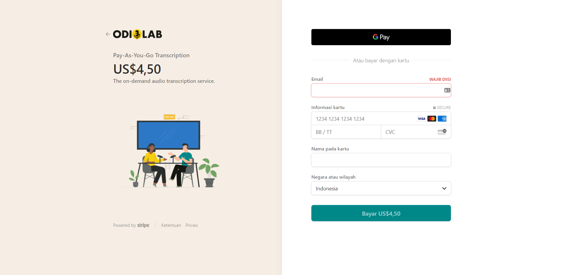 Odiolab is a startup that focuses on the podcast industry. Currently, our product is an automated audio transcription service that supports 31 languages. You only pay for an episode that you want to transcribe. No monthly fees.