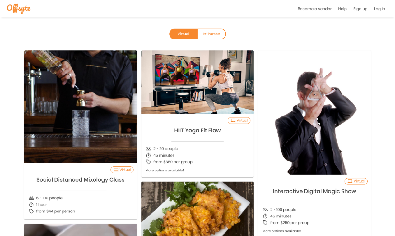 We love team offsites and believe that planning them should be easy, quick, and exciting. So we created Offsyte to scratch the itch. Offsyte is where you can easily browse, find, and book your perfect team outing, all in one place! Book our virtual team offsite events today so you can stay connected with your co-workers while working miles apart.