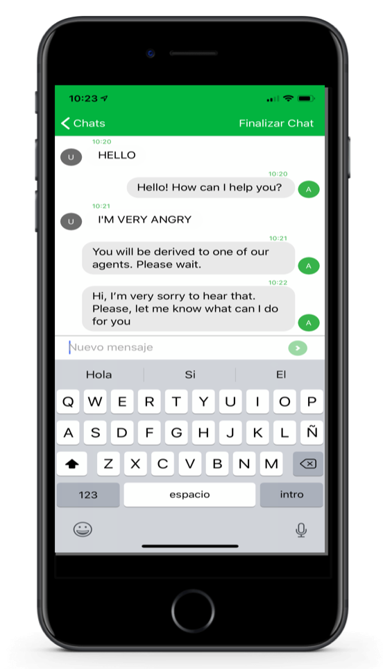 Robots and humans working together! OhWhatAChat doesn't say "I don't understand" OhWhatAChat is a SaaS platform where businesses can build, train and install an AI chatbot into their websites. The interesting thing about OhWhatAChat is that the chatbot can work with human agents and learn from them. The agents can take over the conversations that the chatbot redirects through a mobile App or from their computer. This solution is particularly interesting for companies whose salespeople is allways on the move.