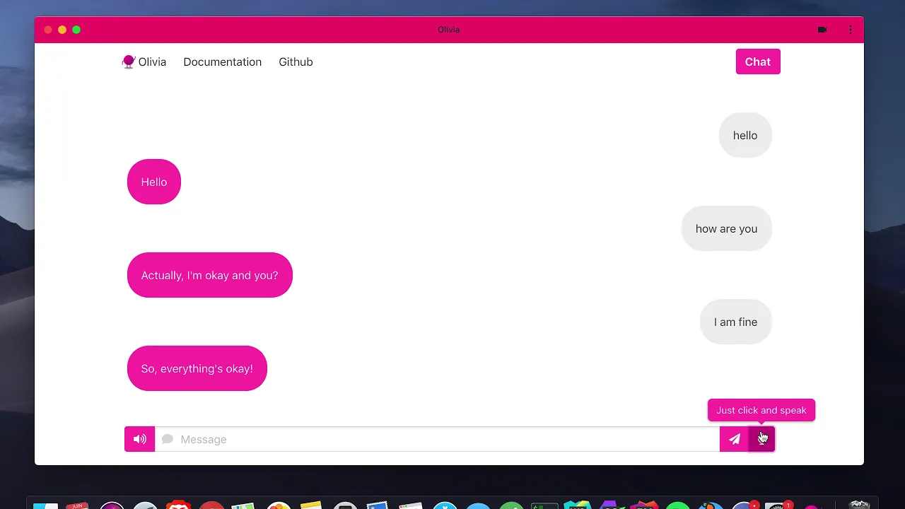 Hello, Here is Olivia, your new personal assistant and best friend. It is completely written in Golang with a Neural Network.