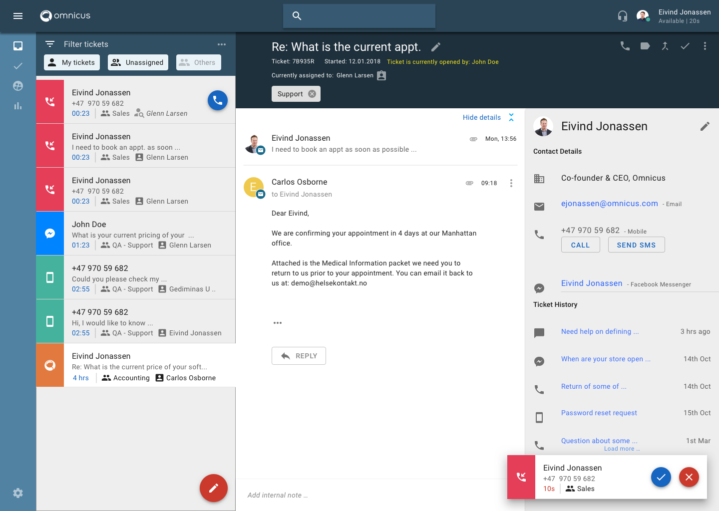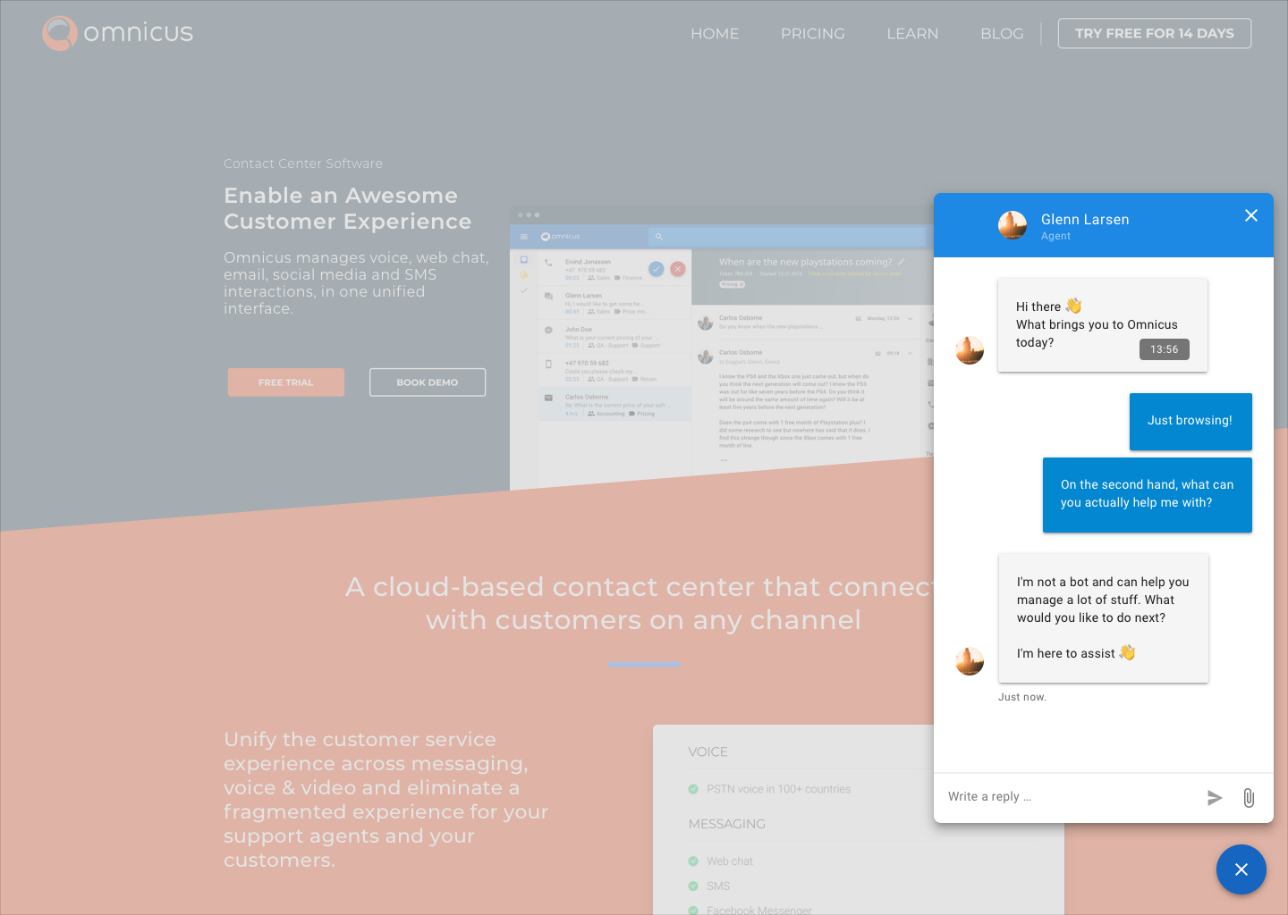 Omnicus help businesses to optimize and streamline customer service operations through automation and smart routing across messaging, voice & video. Omnicus manages voice, chat, email, social media and SMS interactions, in one unified interface. Our omnichannel platform gives companies the ability to have continuous conversations with their customers across all channels for a more personalized touch. By leveraging AI, Omnicus provide your business with automation, to perform trivial, repetitive tasks, currently solved manually. Omnicus transforms your frontline to a true differentiator, a human interface that delivers genuine empathy and the personal touch, culminating in a truly awesome customer experience.