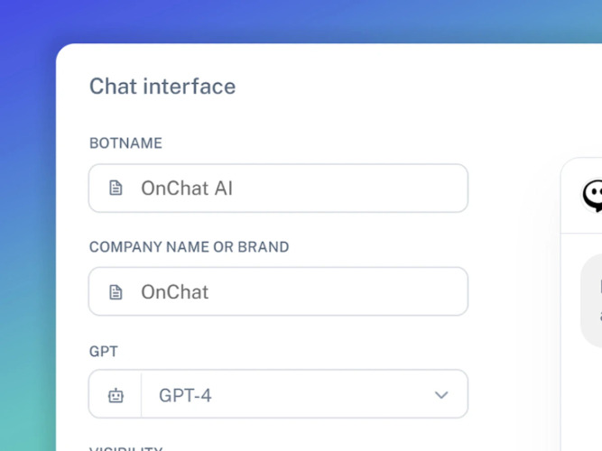 OnChat is an AI chatbot creation platform that allows you to easily build your own virtual assistant, which you can train with the content of your website or any other textual material. With the help of the chatbot, visitors of your website can address their inquiries and providing support. For instance, it can respond to questions from your visitors about order statuses and product stock availability. Beside the chat widget the virtual assistant can answer question on WhatsApp, Messenger and Telegram.