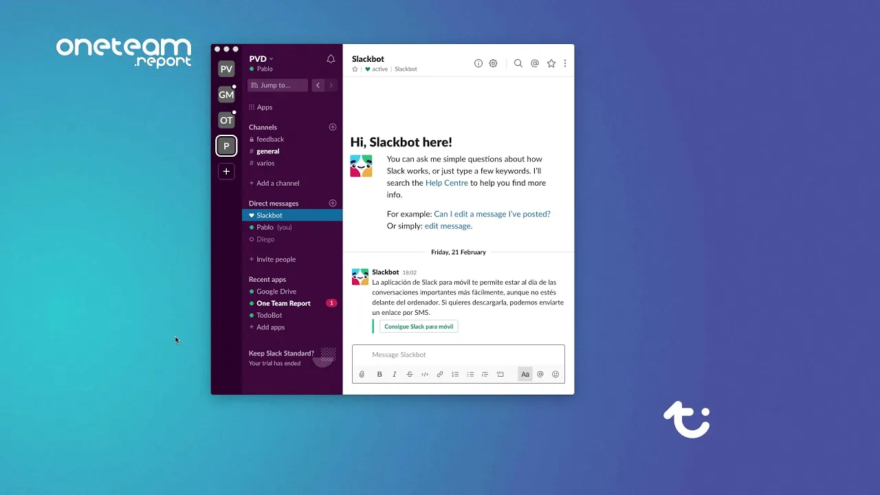 Ask your team everything you want and and get custom reports! One Team Report allows you to check your team progress, collect feedback or ideas asking them! You can write a message to encourage your team to answer, configure it for all your team members, then customize it individually and specify the day or days you want the question sent. Common use cases across small or large companies Recurring surveys, recurring questions about tasks or projects, company-wide engagement surveys, onboarding feedback from your new hires,… and so much more!