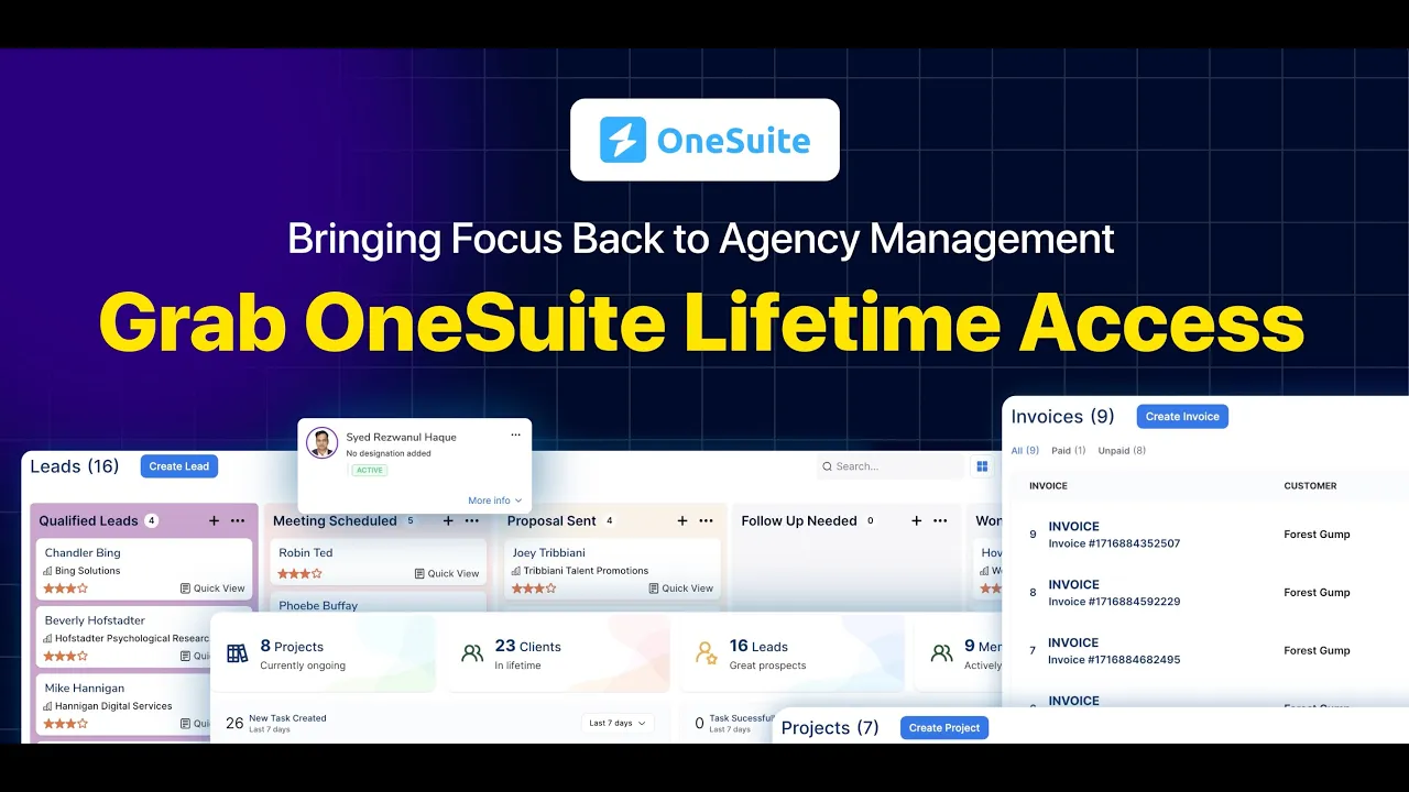 OneSuite is an all-in-one app designed for digital agencies. It streamlines project management, clients, agreements, and invoices in one platform. It helps agencies improve efficiency, boost client satisfaction, and focus on growth.