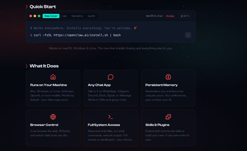 OpenClaw is an open-source autonomous AI assistant platform designed to run directly on your own hardware or infrastructure rather than in the cloud. It integrates with the chat apps people already use — including WhatsApp, Telegram, Discord, Slack, Signal, Teams, and iMessage — allowing you to interact with your AI assistant naturally via familiar messaging interfaces while keeping your data and keys under your control. Unlike traditional chatbots, OpenClaw proactively executes real tasks like clearing your inbox, sending emails, managing calendars, checking in for flights, browsing the web, and automating complex workflows. It combines persistent memory, customizable skills/extensions, and cross-platform integrations to transform simple instructions into multi-step operations, making it a powerful productivity and automation engine tailored to each user’s environment. Built with flexibility and transparency in mind, OpenClaw thrives as a self-hosted solution for developers, tech enthusiasts, and teams who want fine-grained control over their AI assistants. Its plugin ecosystem and extensible architecture enable advanced customization — from task orchestration and browser automation to system-level actions and integration with local tools — all while running where you choose: on laptops, VPS, homelab servers, or edge devices. As an open-agent platform with persistent context and real-world action capabilities, OpenClaw illustrates a shift toward personal, always-on AI that “does things” instead of just talking, empowering users to delegate and automate workflows in a data-private environment