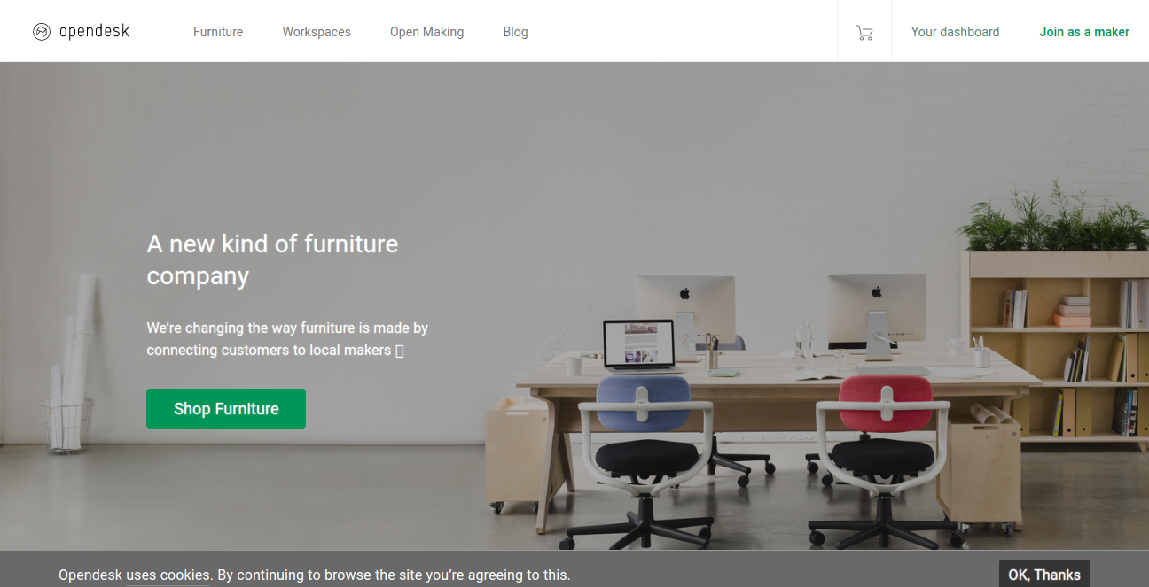 A global platform for local making Opendesk is an online marketplace that hosts independently designed furniture and connects its customers to local makers around the world. Rather than mass manufacturing and shipping worldwide, we’re building a distributed and ethical supply chain through a global maker network.