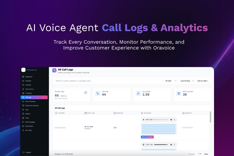 Oravoice – 24/7 AI Voice Agents That Never Miss a Lead Every missed call is a missed opportunity. Oravoice deploys human-like AI voice agents that answer every call instantly, qualify leads, and book appointments automatically — 24/7, without hiring extra staff. Trusted across 30M+ conversations and saving businesses 2.5M+ hours, Oravoice handles the phones so your team can focus on closing deals. Key Features: 📞 24/7 inbound call handling with IVR-style routing 📤 Outbound call automation with CSV/Excel contact upload 📅 Auto appointment booking via Calendly & Google Calendar 💬 SMS follow-up automation 🎙️ 100+ natural, human-sounding voices across languages 📊 Call transcripts, data capture & CRM sync Perfect for: Clinics, Real Estate, Hospitality, Restaurants, Automotive, E-Commerce, Sales Teams & Enterprises Results businesses see: 40% faster response times 99.95% call availability Zero missed leads — even after hours 🚀 Start your free trial today → www.oravoice.io