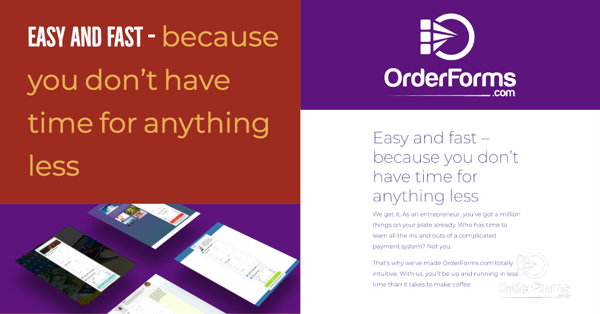 Beautifully designed order forms give your brand a professional edge Just click, link, and go! OrderForms.com was designed from the ground up to give you a great user experience. It’s so easy to set up and use our system, you’ll wonder why you ever put up with the frustration of your current system.