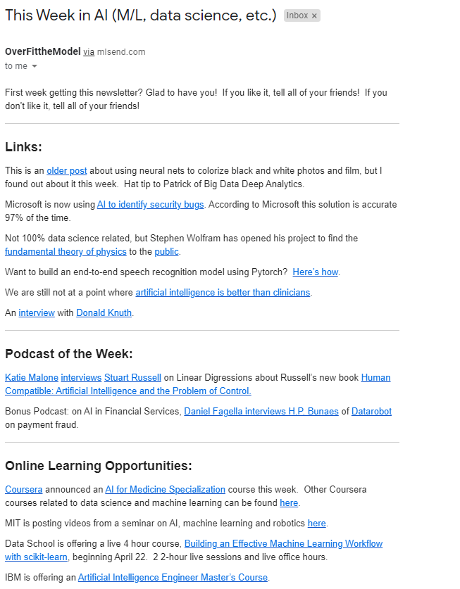 overfitthemodel.com is a niche job board, online education resources and weekly newsletter focused on the data science/machine learning/artificial intelligence space.