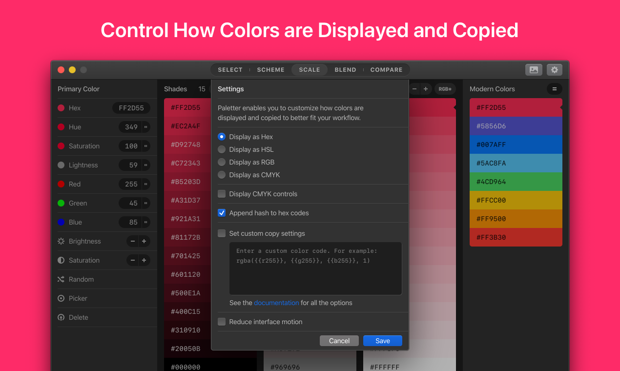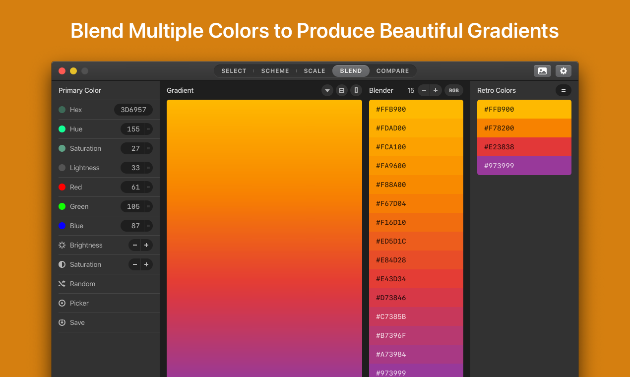 The hardest thing in design might just be choosing colors. Paletter will make your life easier by helping you discover and create matching color combinations.
