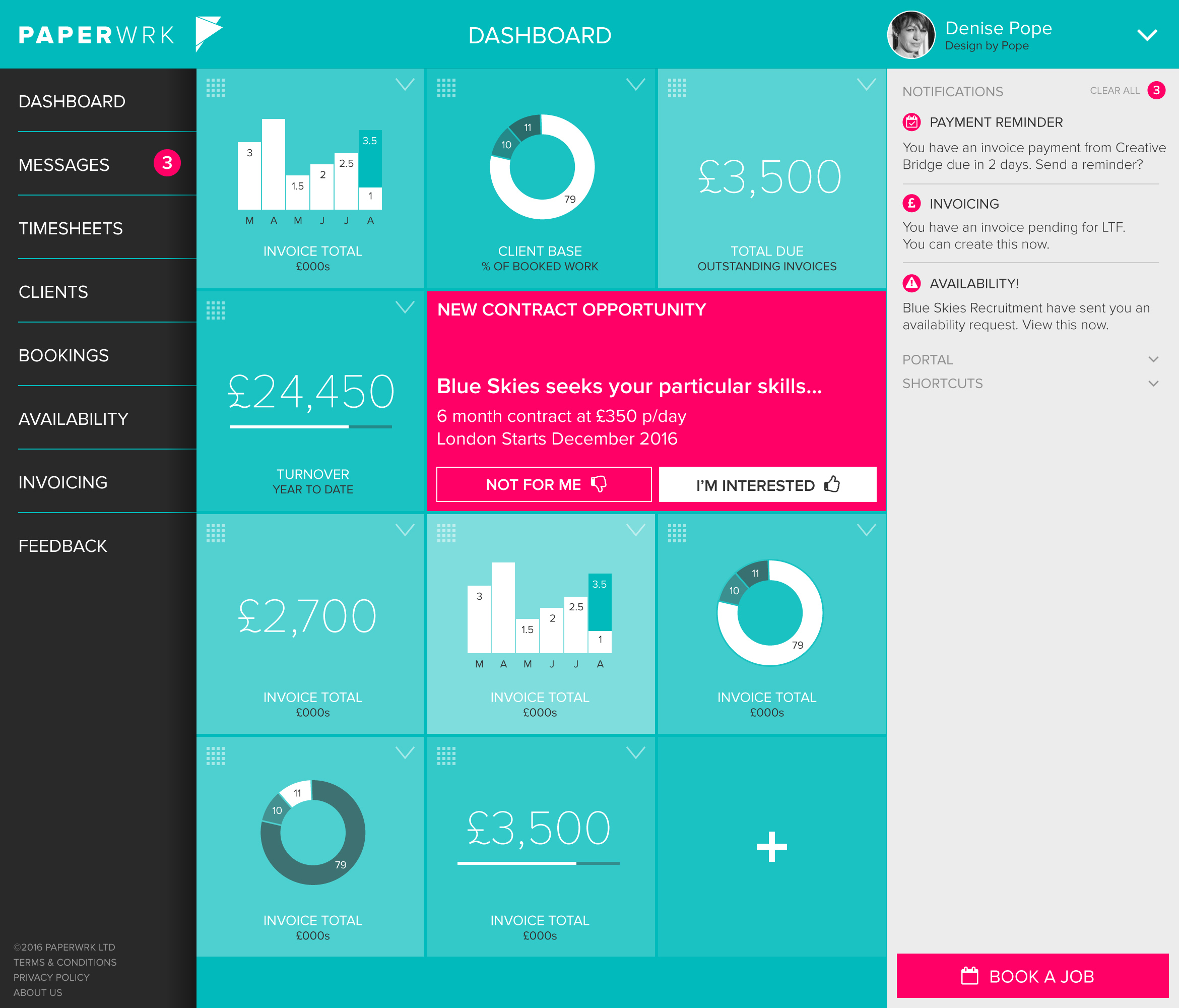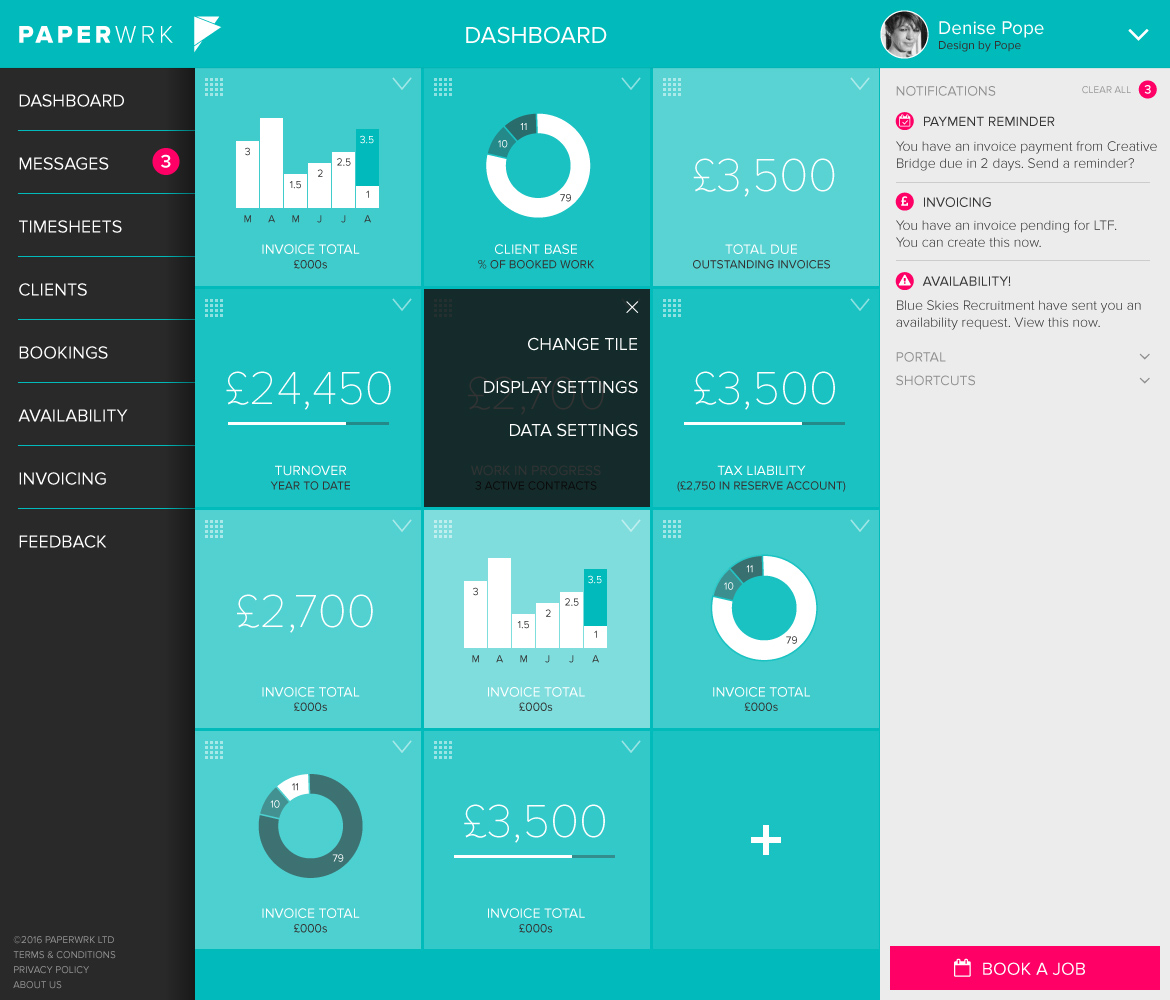 PAPERWRK provides secure storage of important documentation in one place with intelligent analytics that gives you insight into your cash flow each month. Every time you move contract, you can send your documents to the new agent – safely and securely. Bill for contractor work using our customised timesheets and invoicing tool and work with Recruiters more efficiently. Lastly, our Enhanced Dashboards give you relevant data at your fingertips. As part of our service, we provide over 7 different administrative tools and processes into PAPERWRK so you can do the things that matter to you most in life.