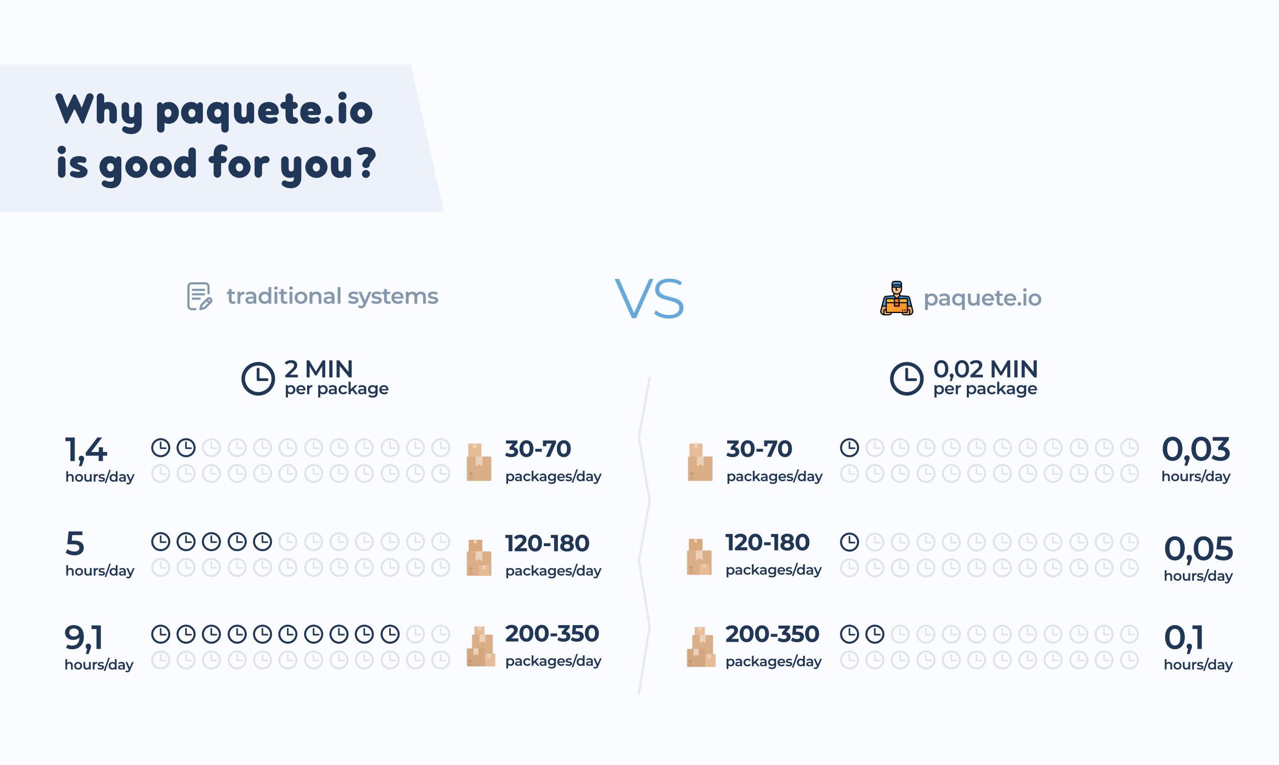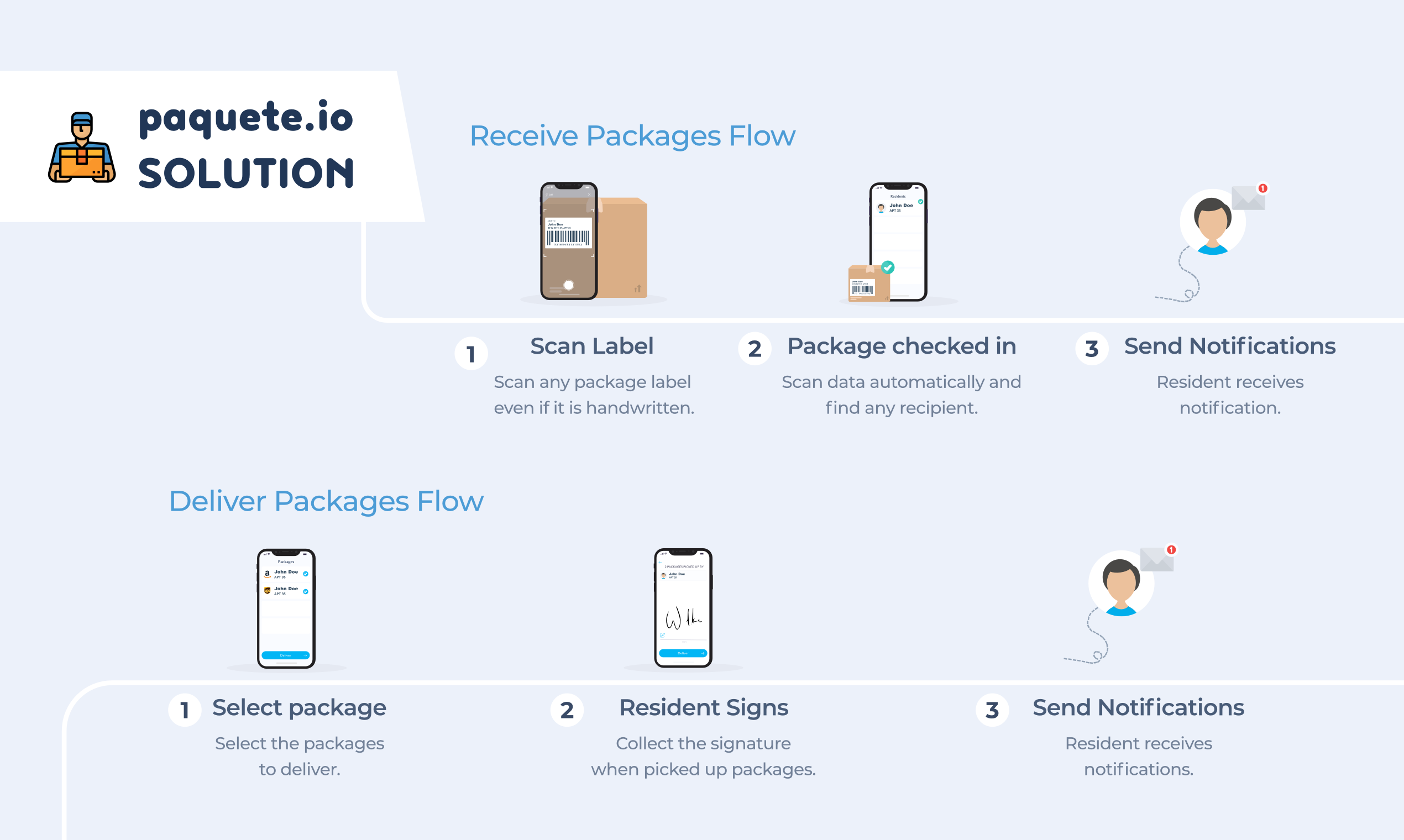 Paquete.io helps streamline the package management process. With an automated solution powered by AI, it saves time and minimizes the stress of residential building concierges. - Automated package inventory. - Scan any package label even if it is handwritten. - 99% recognition data effective. - Notifies the resident automatically. - It handles data in a reliable way, digitally keeping track of the package's history. - It saves a lot of working time. Process a package in less than 20 secs.