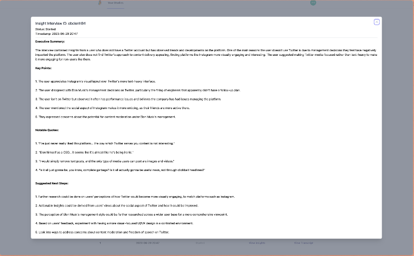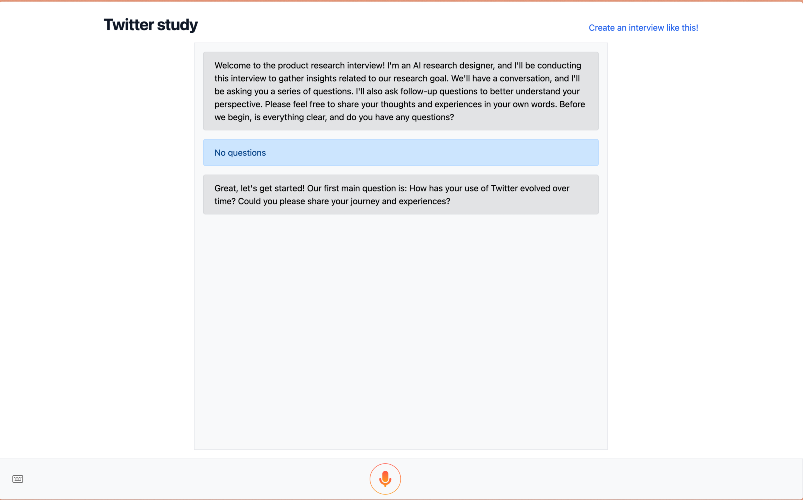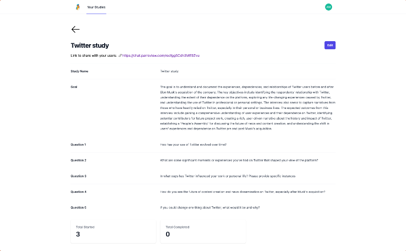 Today, researchers face an unfortunate tradeoff: do you want fast insights (surveys) or do you want deep insights (interviews)? With Parroview, researchers get both. Al autonomously conducts and synthesizes hundreds of in-depth research interviews at once, turning weeks of work into hours. Stemmed from the struggle experienced first-hand, we have used our expertise in LLM and research to build the product we wish we always had: Al-moderated research.