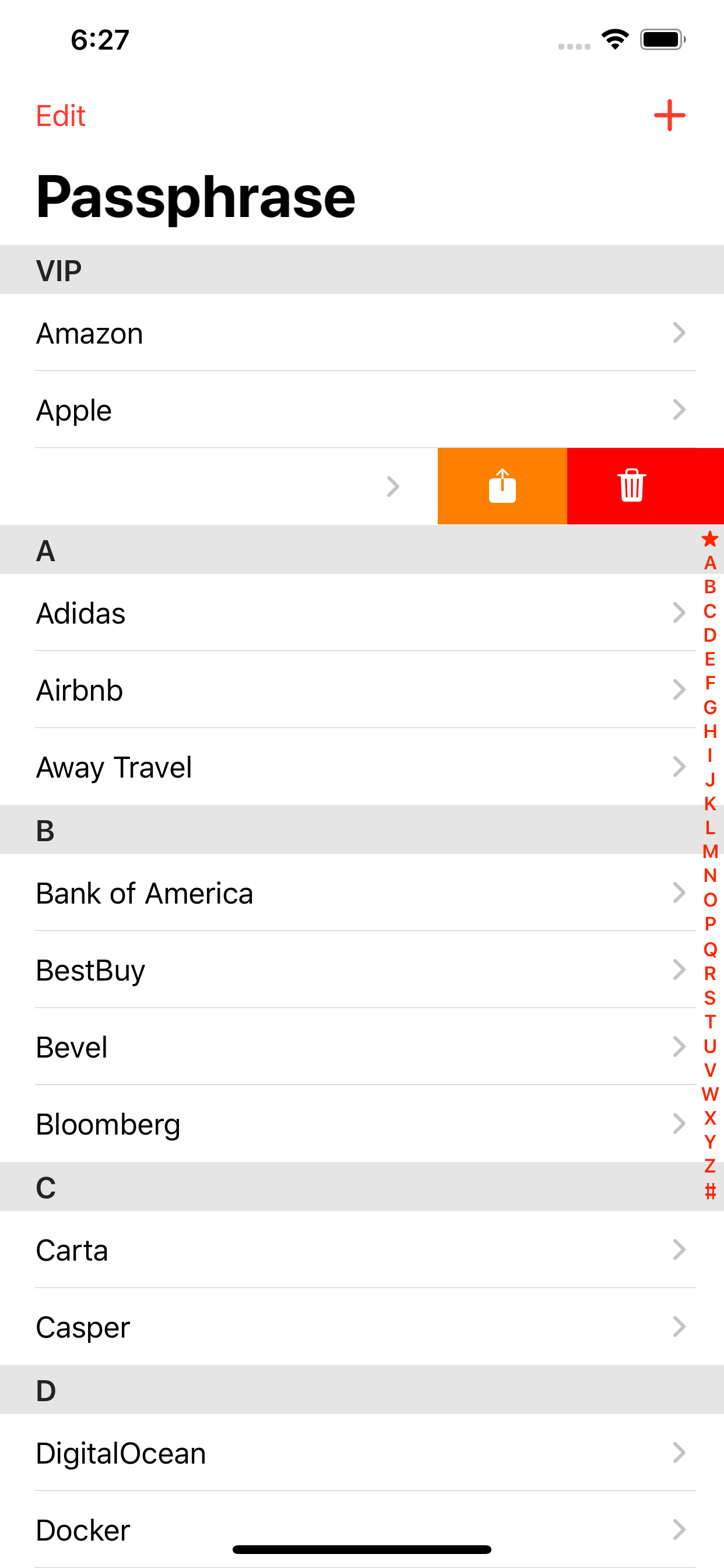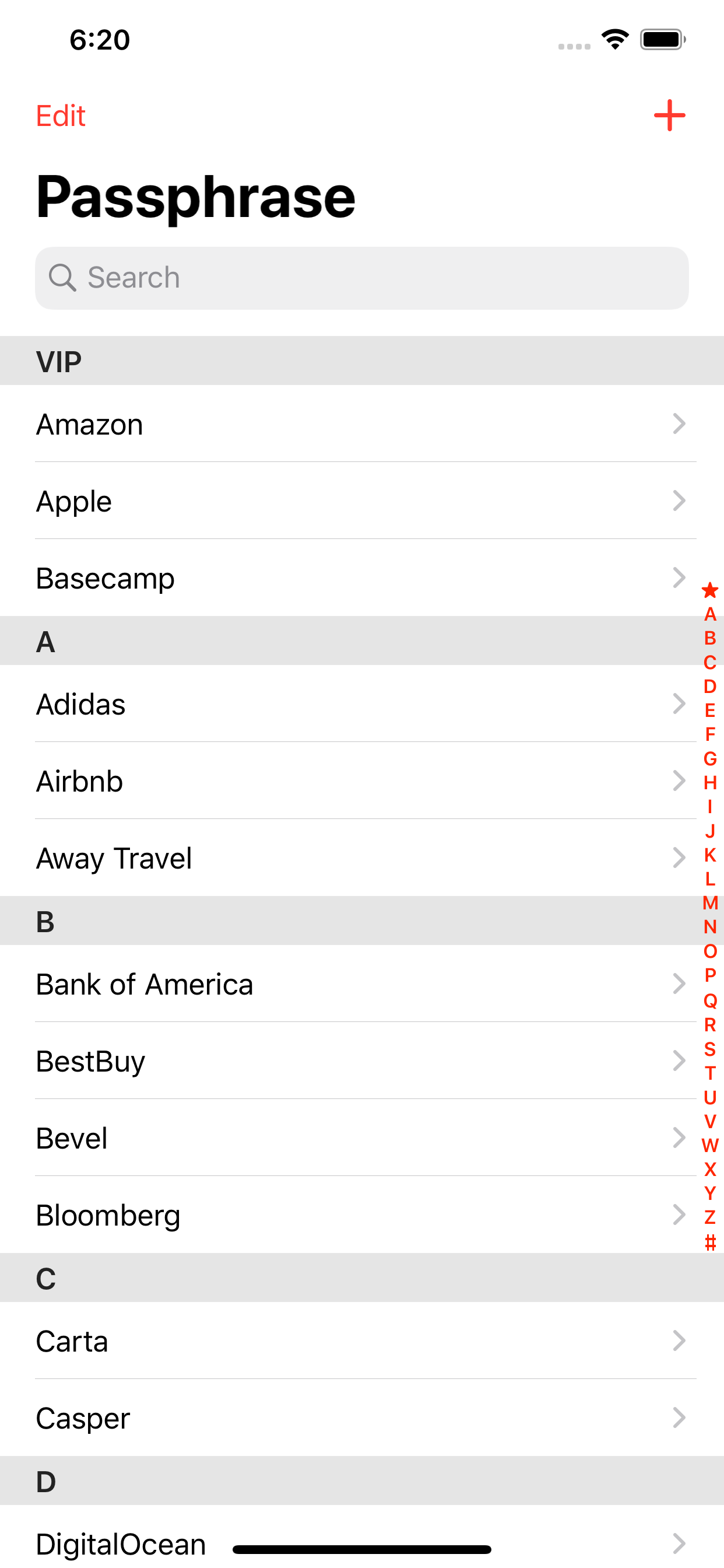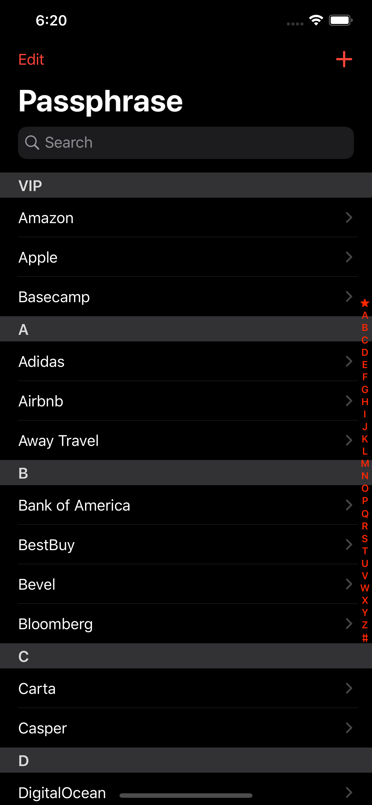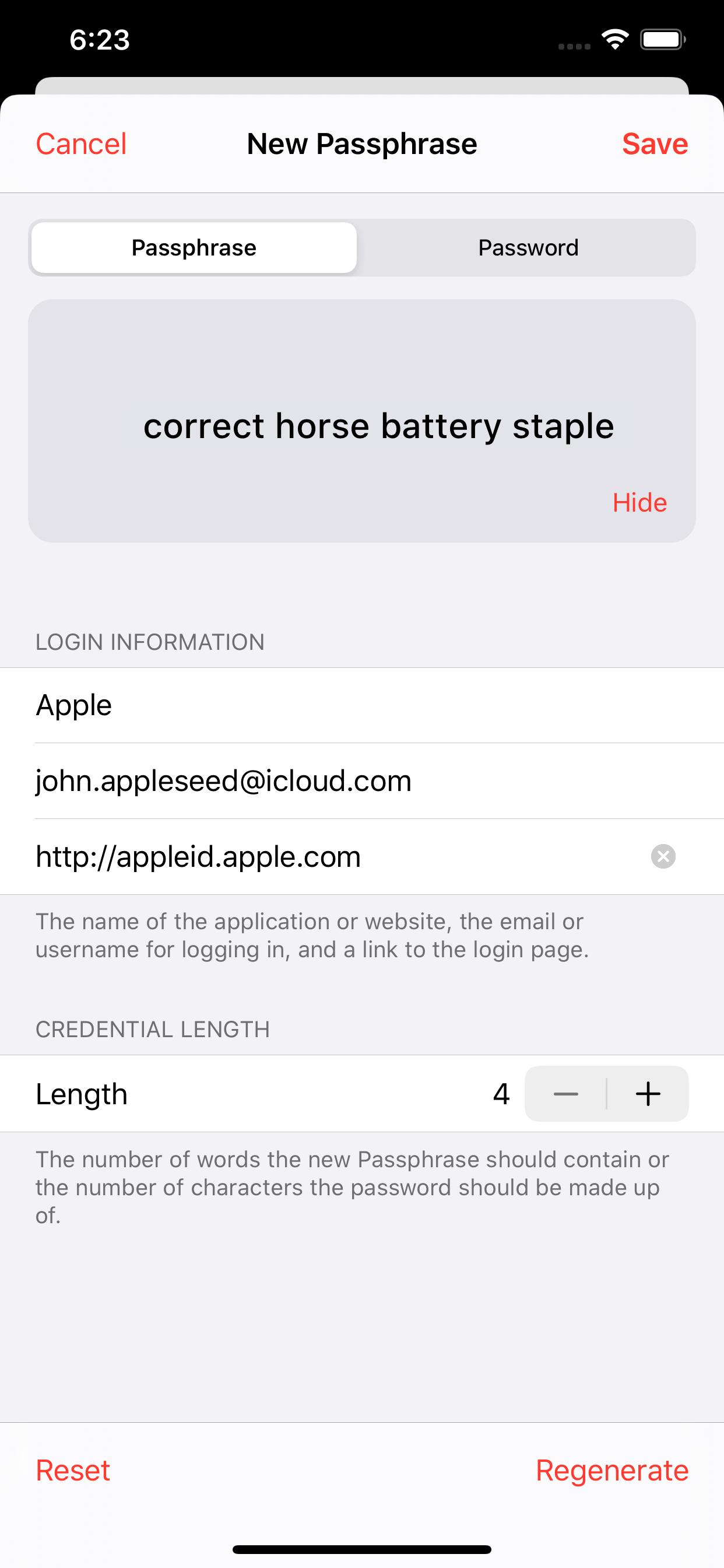 Generate secure passphrases and passwords, quickly and easily, with Passphrase. Anyone that's familiar with built-in apps such as Mail and Calendar will feel right at home managing credentials and navigating the app right away—no manuals or user guides necessary, so jump right in