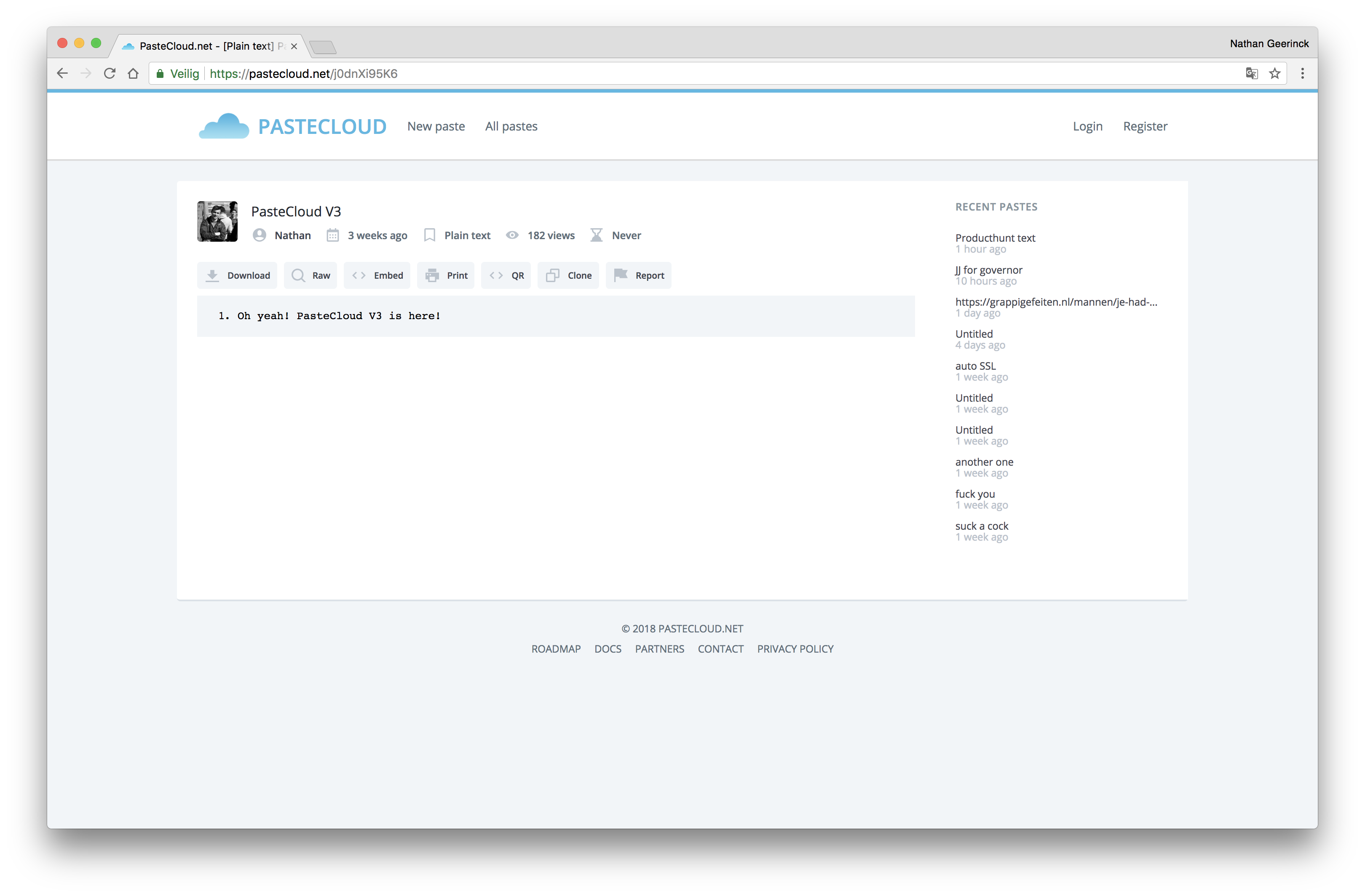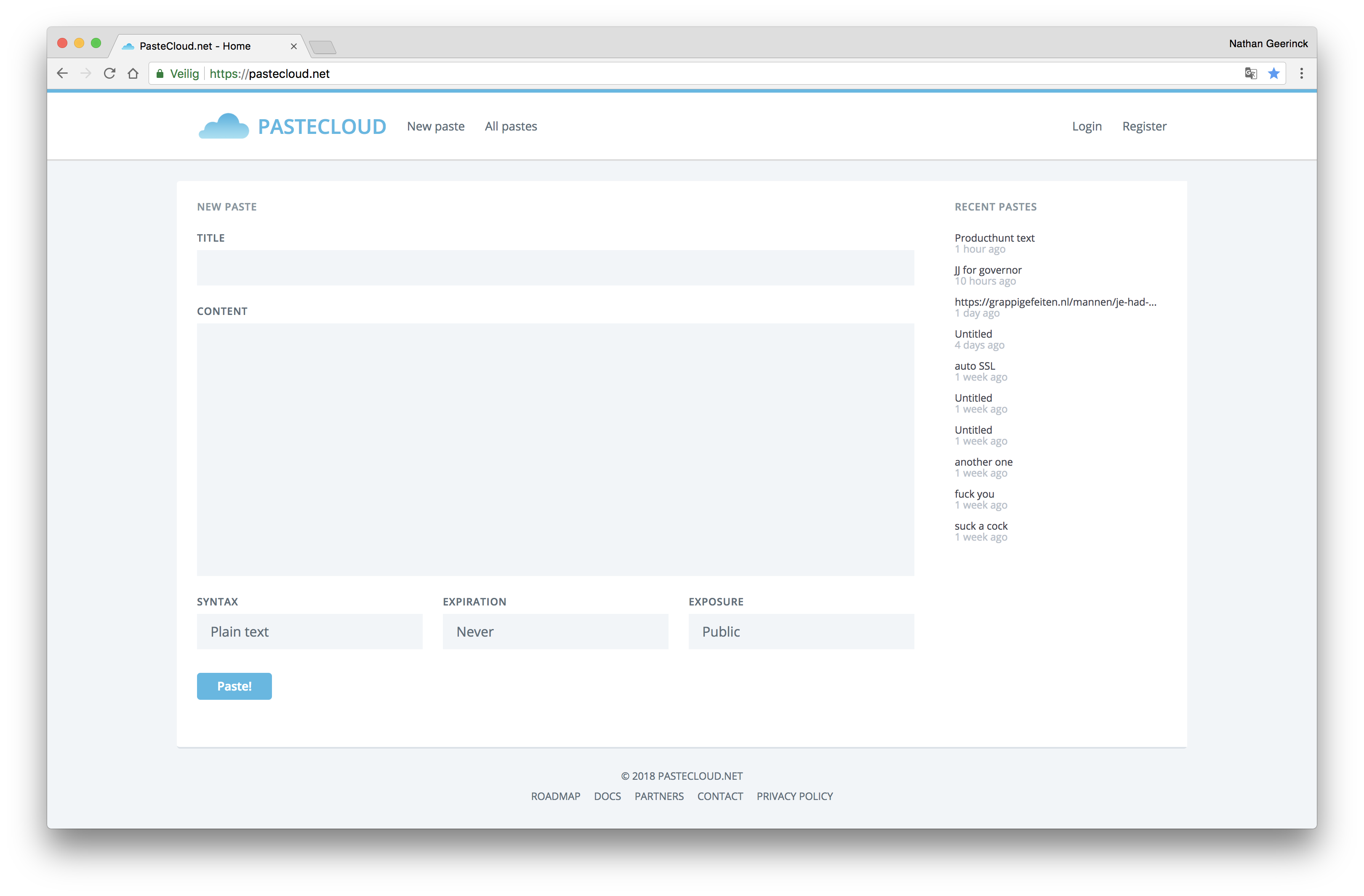 At PasteCloud you can store pieces of text or code and share it with everyone (or you can keep it private ?)! You can create an account to get access to all features!