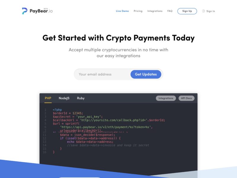 Get Started with Crypto Payments Today Accept multiple cryptocurrencies in no time with our easy integrations -Easy Implementation Express setup gets you running in minutes. Or customize it with our easy API and docs. -Fast, Cheap, Zero Fraud Crypto Payments are faster, cheaper and guarantee no chargebacks. -Privacy and Security Cryptocurrencies by their nature offer privacy and security to both customer and merchant.