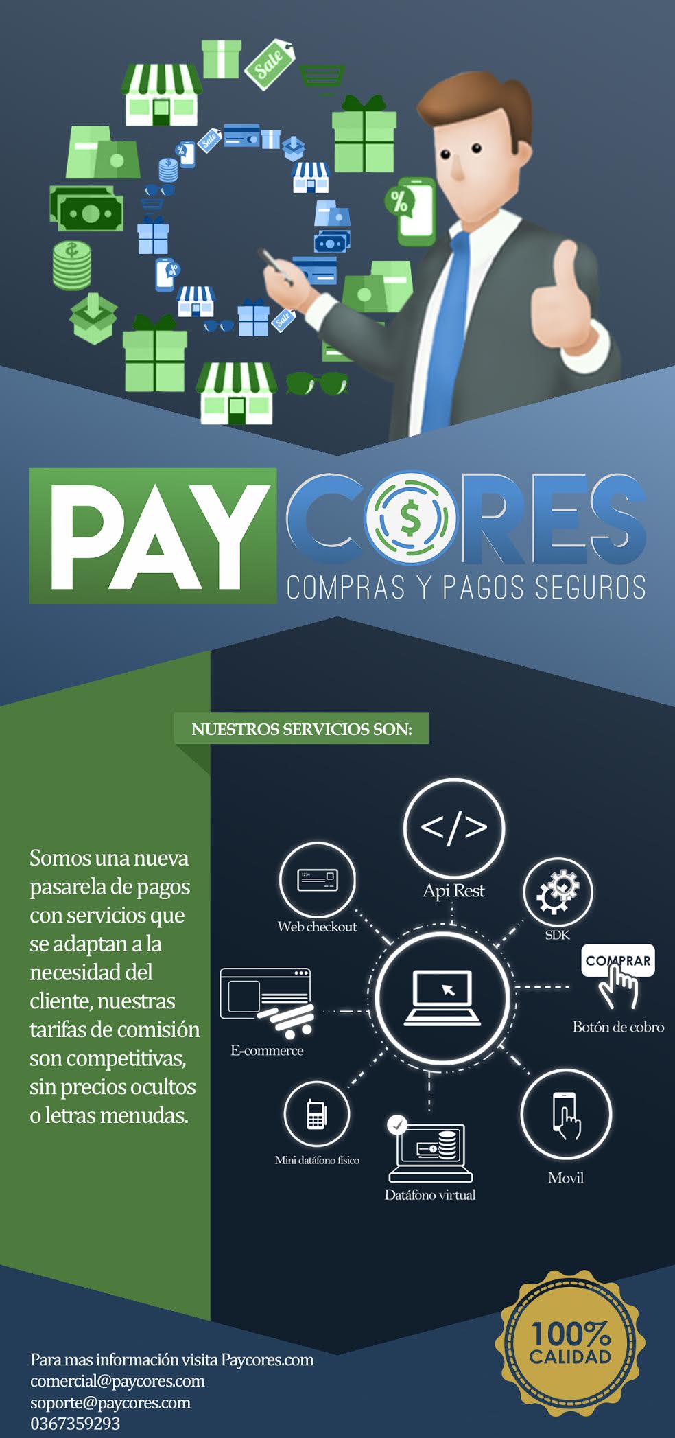 Pay States is a company which its principal function is to develop and deliver its main product named Paycores which is a payments gateway service, where transactions of any franchise (MasterCard, Visa, American Express, Diners Club) are processed.