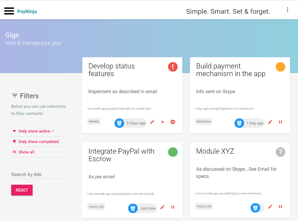PayNinja getting paid on time, every time has never been easier. Keep all your gigs in one place and use PayNinja to manage the payments. No more invoicing. No chasing payment. Verified work. No disputes. Lowest fees. So how does it work? * BYO Talent or Clients without a public profile * Create a gig in seconds and share it on chat for instant acceptance * Payment is safe in escrow * Machine learning algorithm verifies work . Clients - automate your payments. When work is verified payment is released. Freelancers - bill per hour, weekly, fixed price or milestone delivery. Do the work and get paid. The first 250 members to join PayNinja will be given FREE fees ...for life! Go to http://payninja.co and join the movement.