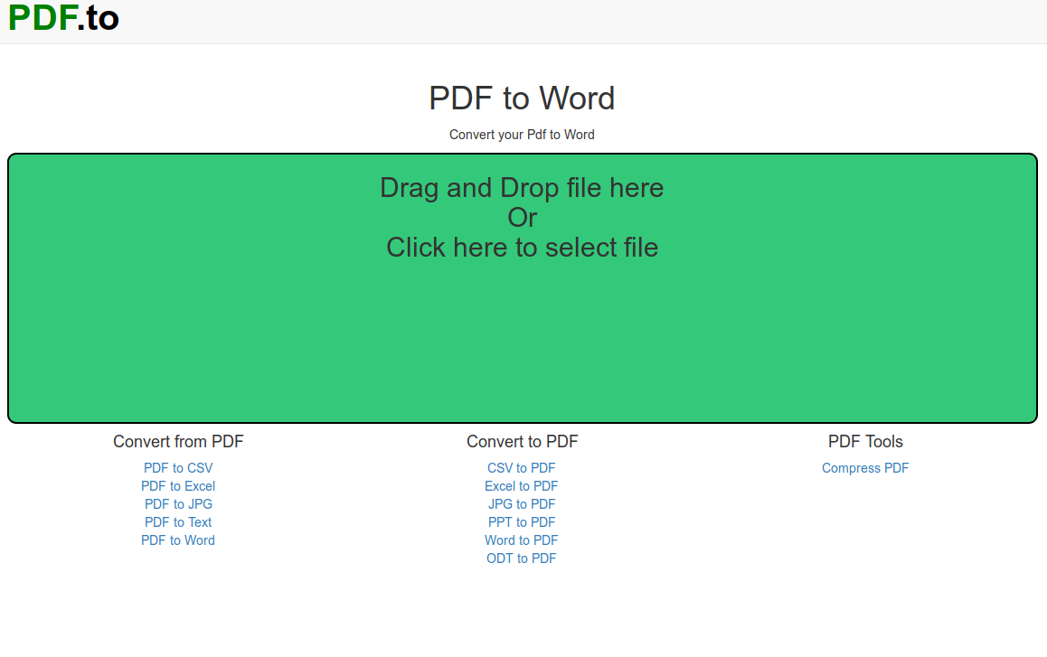 Pdf.to lets you convert PDF to Word, PDF to Excel, PDF to JPG, PDF to PNG, and many more. It also lets you compress PDF