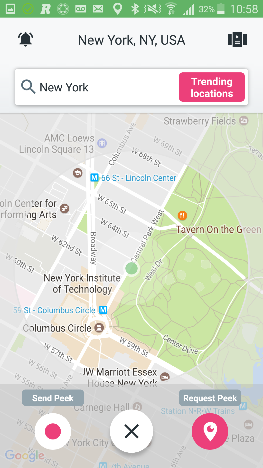 Peek.to is an instant anonymous location sharing app. Explore a real and unfiltered world through the eyes of others. Imagine being able peek to any location , across your street , neighbourhood , city or even the other side of the world.
