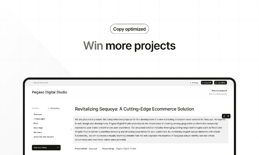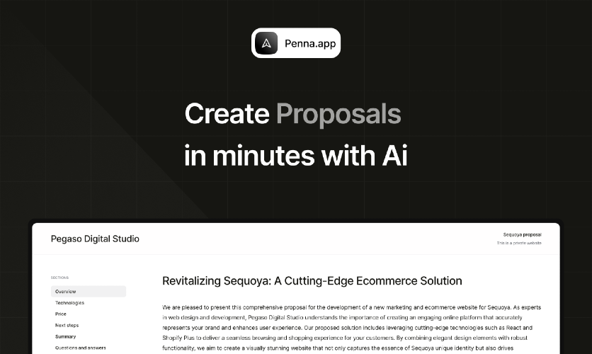 Penna.app let you build online Proposals as websites with AI, so you win more customers saving days of work.