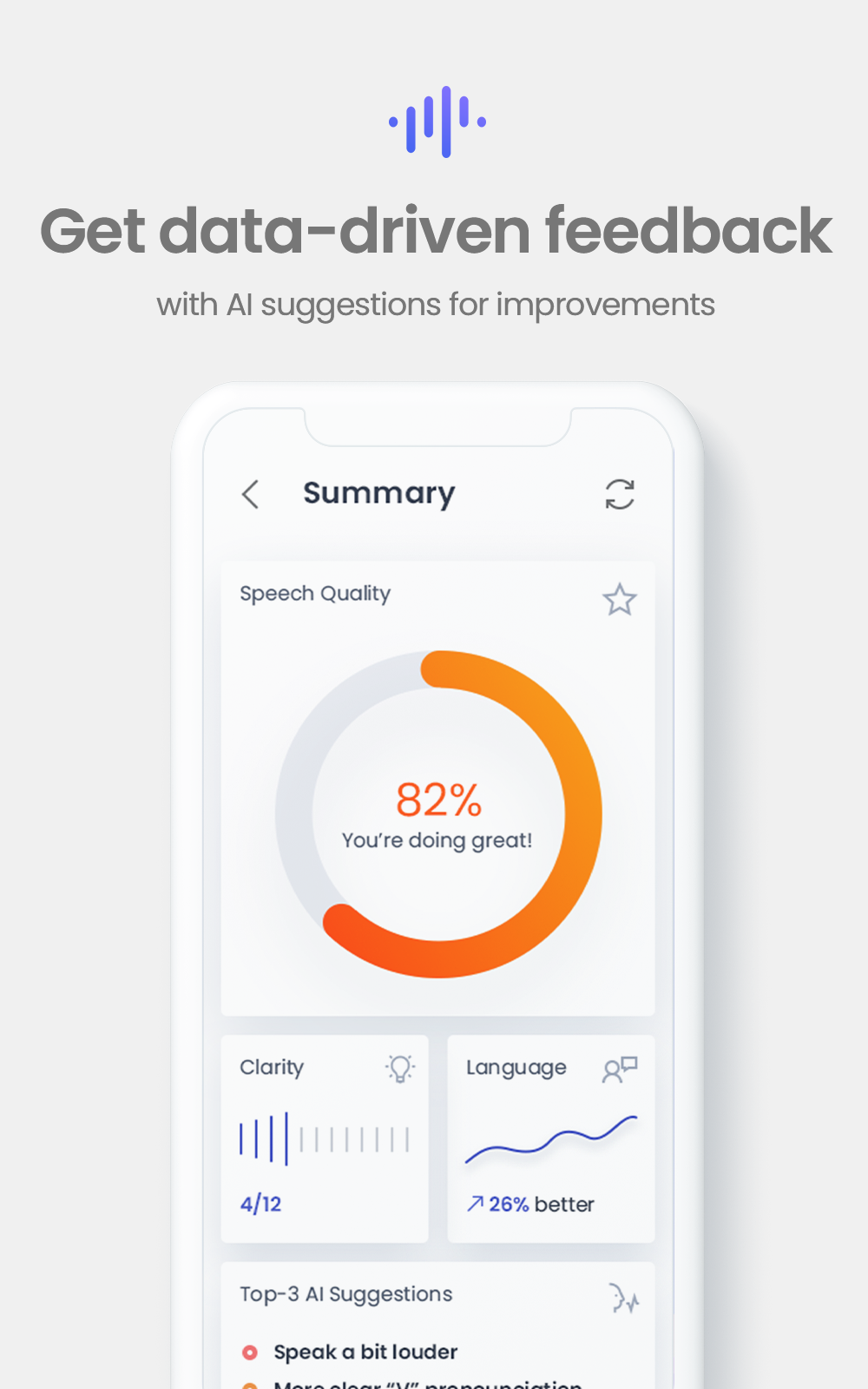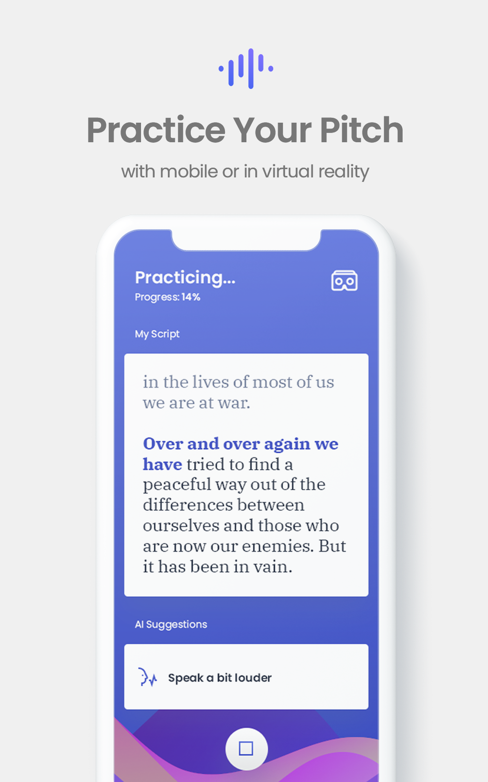 Do you feel anxious while speaking in public? Or just can't overcome yourself even to get started with the public speaking? OK, most of us do. But it shouldn't be so. Get rid of the fear of public speaking easily with Virtual Reality and learn how to improve your speeches with AI suggestions. While VR is a proven way to get rid of anxiety, Phonal AI checks your speeches' pace, tone of voice, amplitude, length of words and sentences you use and give you data-driven feedback and suggestions on improvements. Works as a mobile application with VR mode inside. VR mode works well with any cardboard or mobile headset like Google Daydream. Even if you haven't cardboard or headset yet - it's not a problem. You can start with our mobile app first, practicing and improving your speeches performance, and then proceed with VR when you're ready. Sounds good enough to try? Just get invited at phonal.ai!