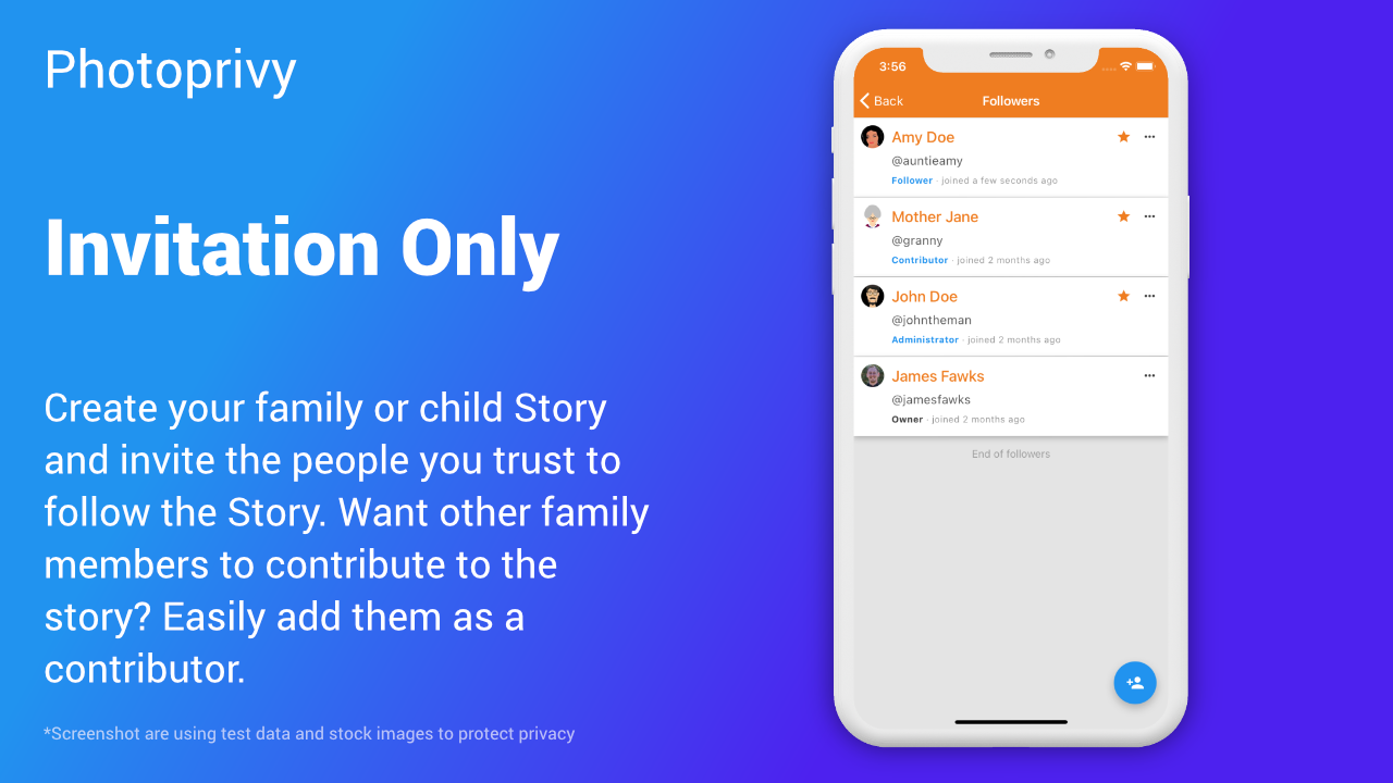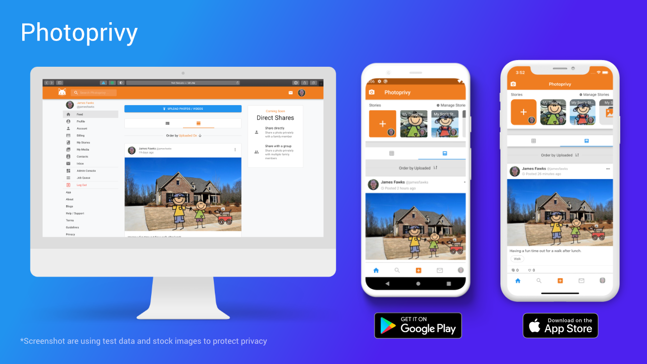 User privacy is not a feature to be sold. User Privacy is a way of doing business. Photoprivy was founded on the belief that children’s online privacy is imperative and should be protected from outside forces that want to do harm to them or their families. Photoprivy is developing a platform for parents to share their children’s photos, trusting that only the people they invite will have access to those photos. Our users’ privacy is, and always will be, our first priority. Your data is yours and not ours to sell.
