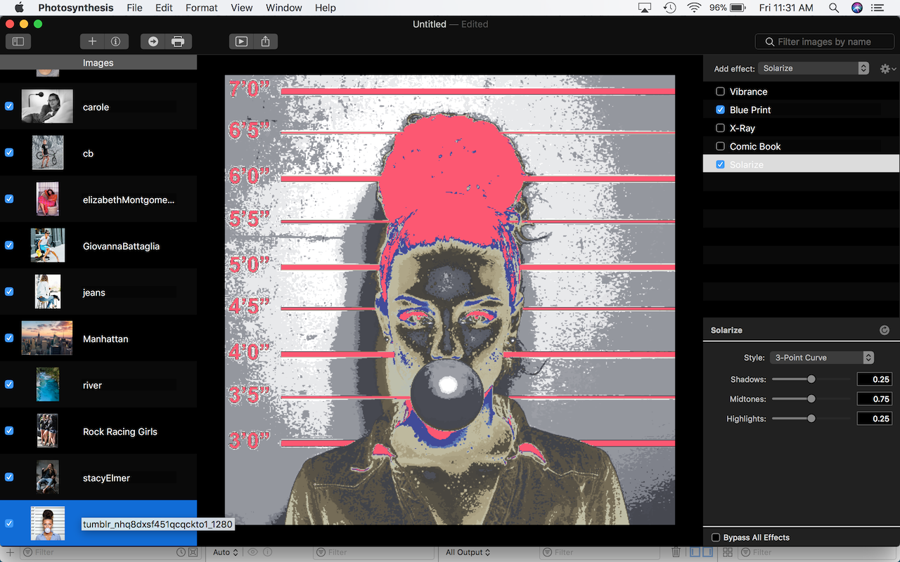 Photosynthesis SX lets users create and apply custom image filters to a collection of items producing a consistent set of output images that can be previewed, printed, exported and shared with other applications and various photo-centric internet services. Photosynthesis SX 1.0.1 includes the following key features: • Image Effects More than 70 built-in image effects are available to apply to items in the Photosynthesis Tray. • Exporting Output images are created in the background, enabling you to continue working without waiting. • Interoperability Drag'n drop (or copy) high-resolution images from Photosynthesis to other applications or the Finder. • Settings Use the copy and paste features to quickly replicate settings from one item to another. • Printing Print high-resolution source material as a single image, on a contact sheet or as image slices. • Sharing Share your images with other local applications or Facebook, Twitter or other popular internet services. • Slide Shows Quickly create an interactive presentation using your filtered images. System Requirements: Macintosh Computer and OS X 10.13 (High Sierra) Pricing and Availability: Photosynthesis SX 1.0.1 is available as a free download from the Mac App Store in the Photography category. Additional functionality to remove watermarked content is available via in-app purchases.