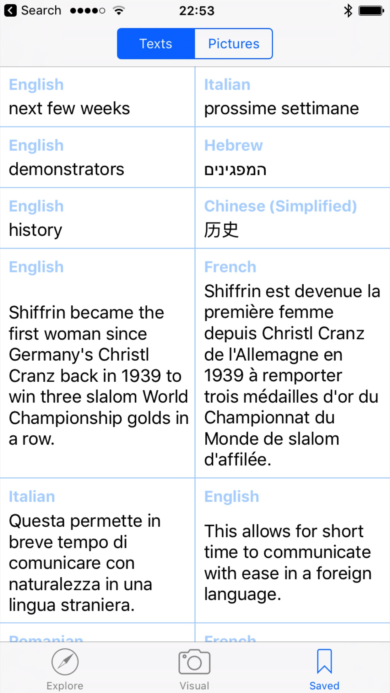 Helps you improve your knowledge in any foreign language. How? Select & translate words. Save them. Take a photo and let Phranslator detect what's in it. Then tap on words to translate and drag them on the picture where they belong. Save! Check saved translations everyday! https://itunes.apple.com/app/id373768864