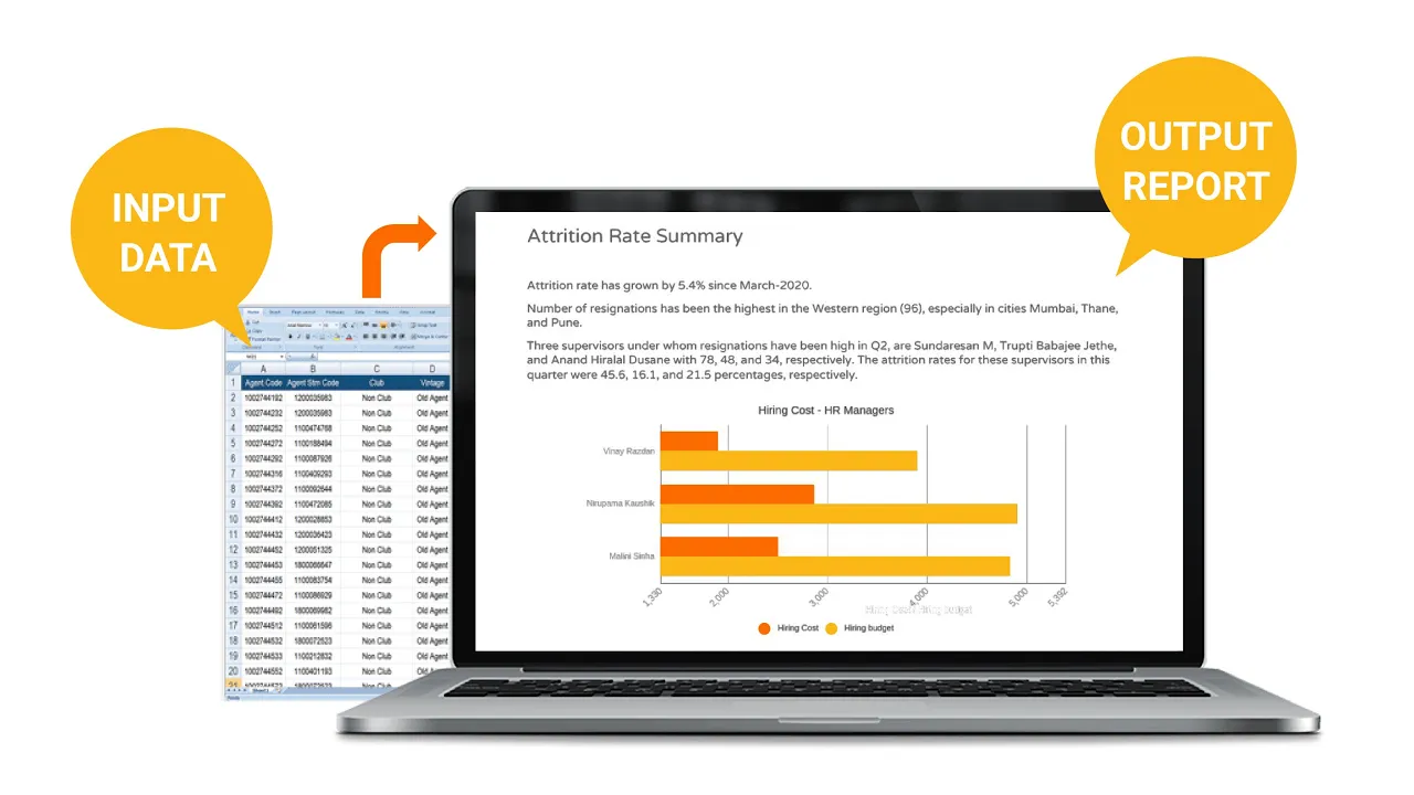 vPhrase's self-service BI platform, Phrazor, provides insights from data in human language. While popular BI platforms use visualizations, Phrazor uses language because complex inter-relationships between data-points and deep insights are difficult to communicate without using language. Besides, Phrazor can also create personalized reports at scale in seconds. Phrazor summarises data into a few bullet points, highlighting key insights required for decision making.