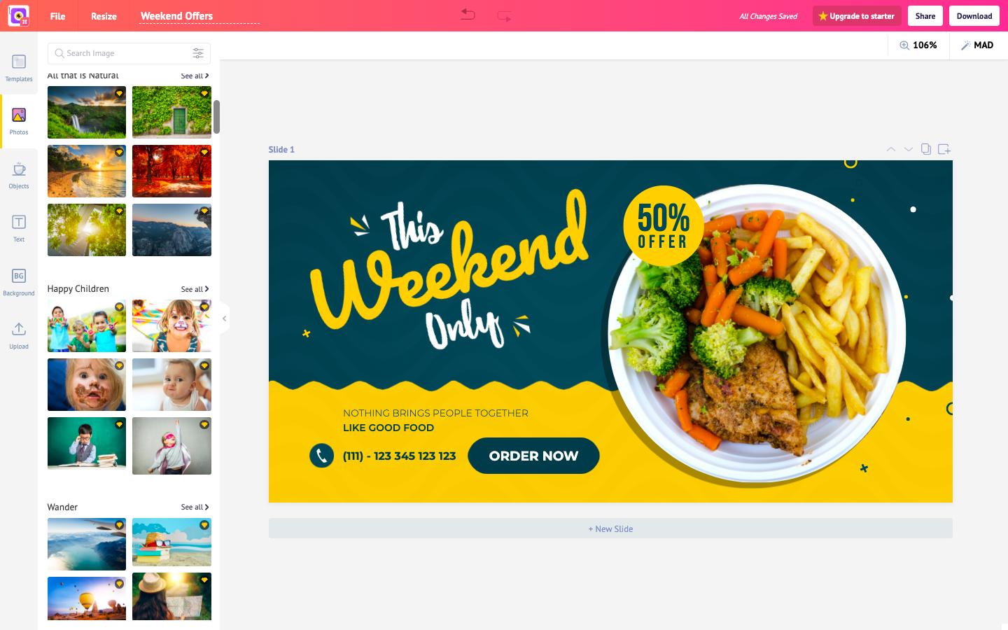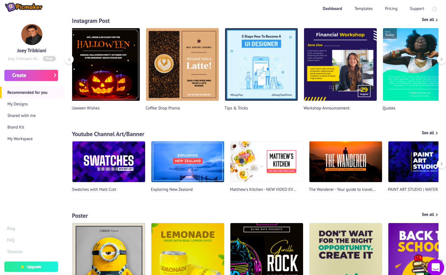 Picmaker is a free DIY design platform that lets anybody create stunning professional designs in minutes. Be it a YouTube thumbnail, channel art, Instagram posts, banners, ads, logos, stickers - you name it, we’ve got it for you. Besides, you don't need any design knowledge to get going on Picmaker. Get started for free now. Here are 3 reasons why your business needs Picmaker 1. Templates for any occasion Use Picmaker’s library of 10,000 unique templates to create designs for any occasion. Have an upcoming product launch, your pet’s birthday, school assignment, or the local community event - you name it, we have templates for it. 2. Pictures worth more than a thousand words Get access to millions of high-quality pictures that make your designs look incredibly professional. Whether it is a social media post or an ad copy, use our images to create designs that look professional. 3. Endless customization Looking to create designs that match your brand? No problem. Drag and drop shapes, fonts, text, emojis, or gradients to make your designs come alive. All in just a few seconds. Setup time? Less than 2 minutes Sign up to Picmaker and join a growing bandwagon of a million users who create awesome designs every single day.