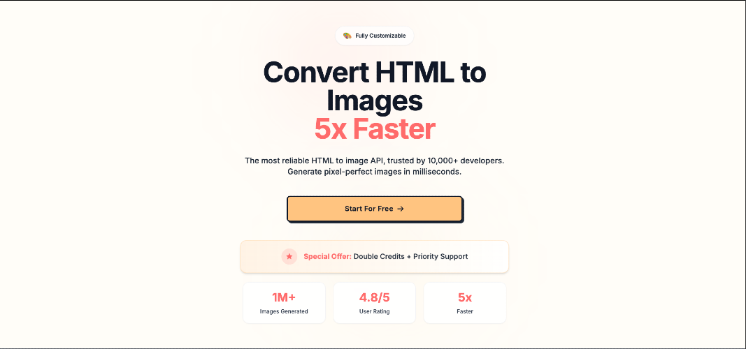 Convert your HTML into images or GIFs effortlessly using Pictify's HTML to Image API. Our fast and reliable API allows you to generate personalized visuals for marketing, social media, emails, and more. With advanced customization options and instant access, Pictify empowers you to engage your audience effectively. Use cases -: Marketing assets Personalised email graphics Social sharing cards Certificates and badges Why Picitfy -: Fastest image generation out there Image is served via CDN by default Smart cropping to remove whitespace by default Capture images and gifs from URL Advance options to set selector, viewport and more Easy to understand documentation.